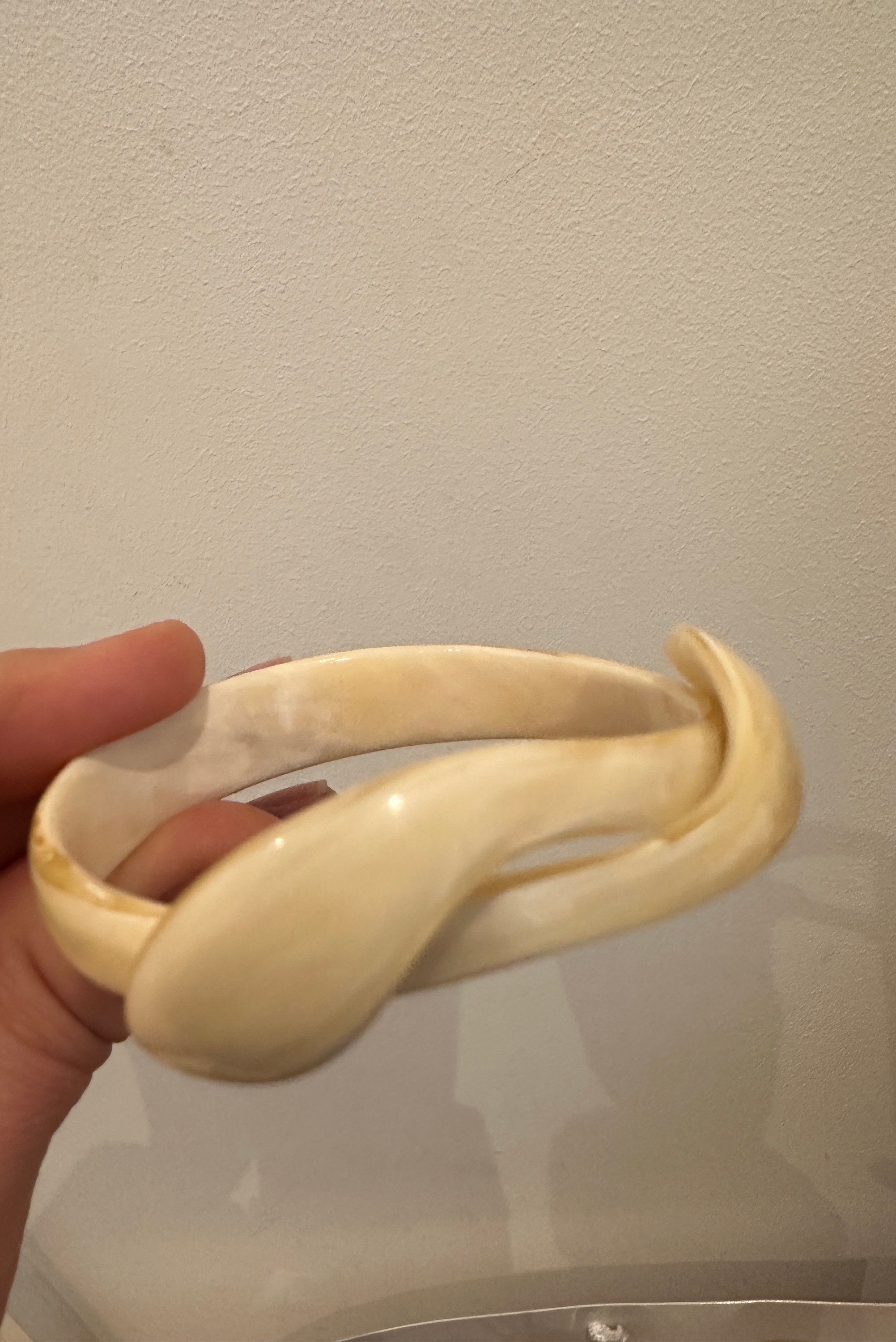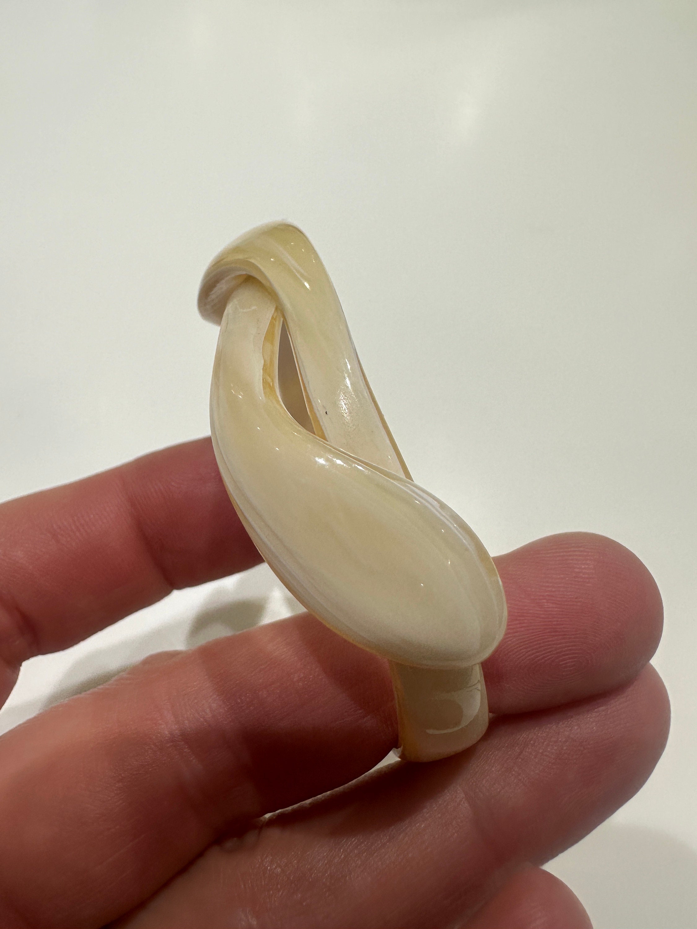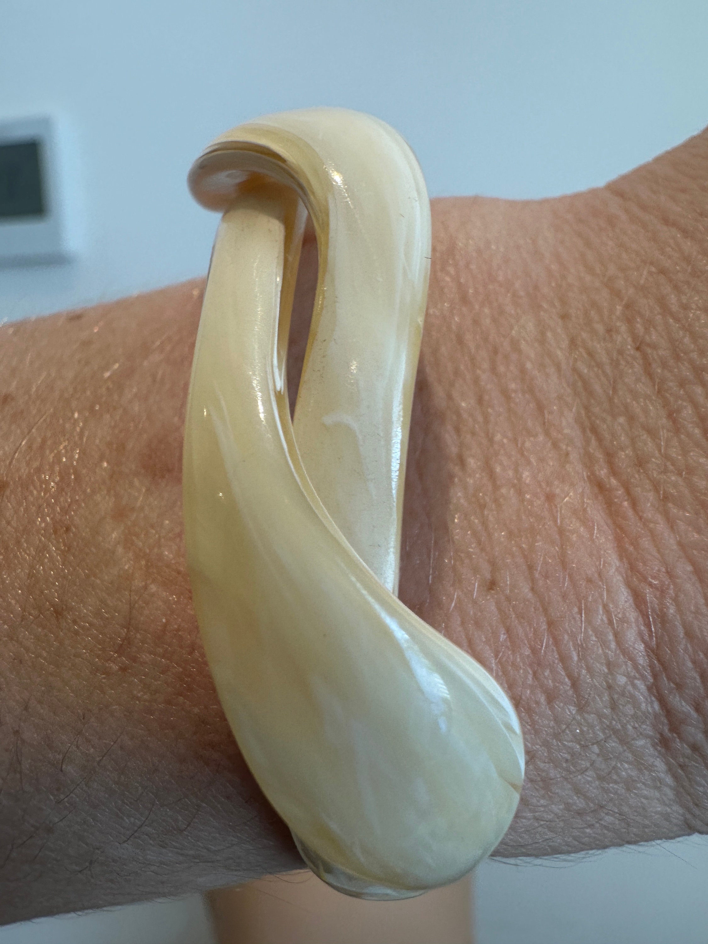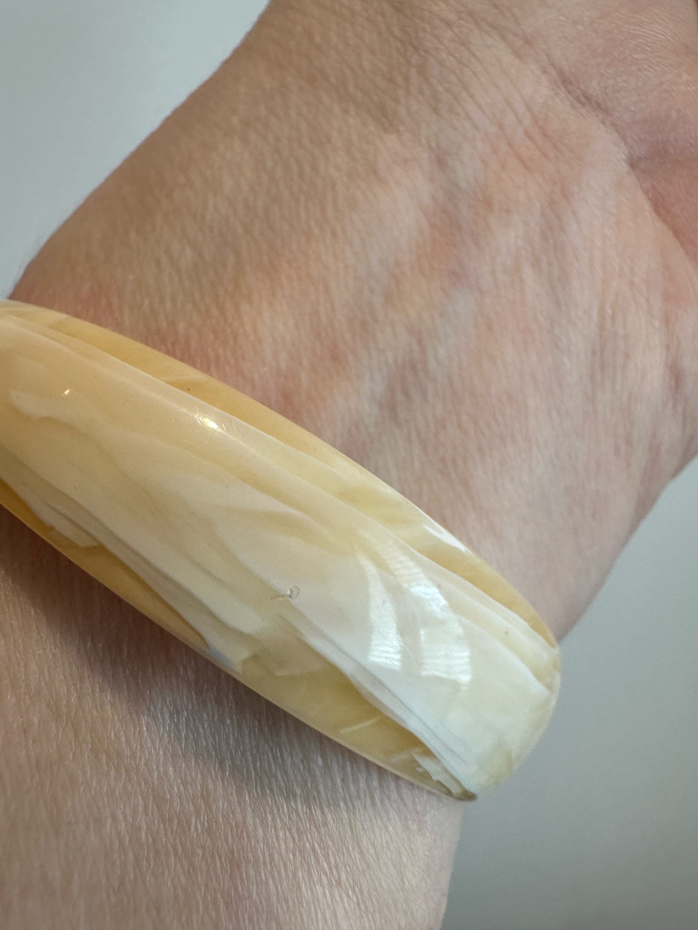 Here is a vintage celluloid snake bracelet by designer Lea Stein. This bracelet has all the associated elements of a vintage piece of her work apart from the signature. It is for a small wrist best 6inches in diameter. The celluloid has little give but opens enough to place in a smaller wrist. Quite tricky to put on.