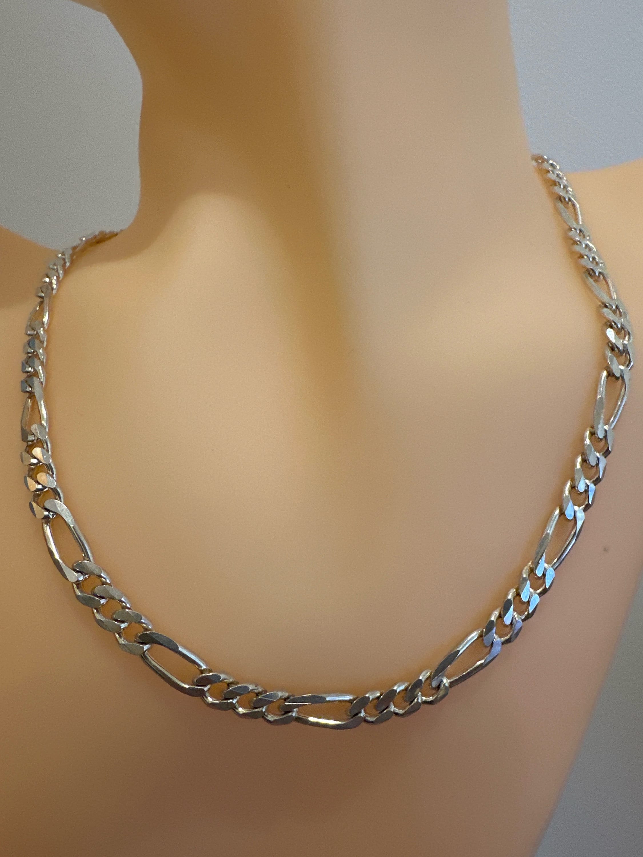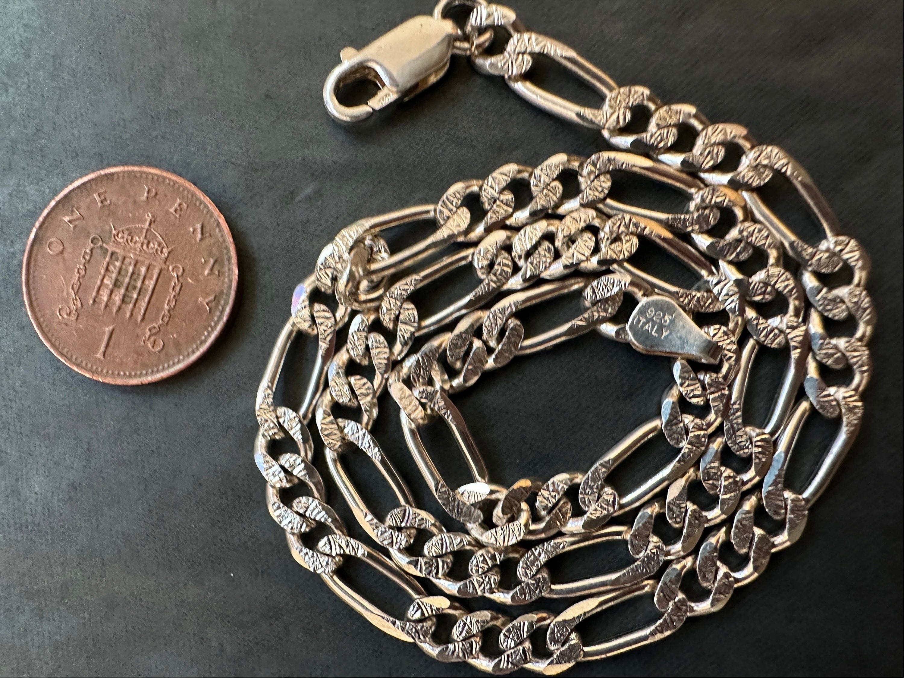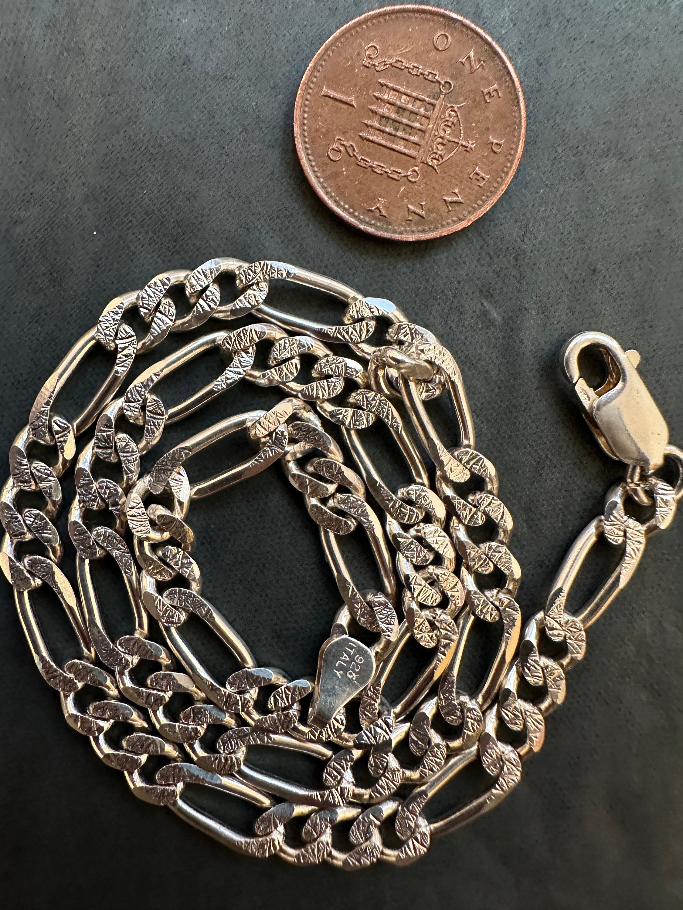 15 inch solid silver Italian Figaro link chain necklace 5mm thick 19.9 grams. Unisex silver chain