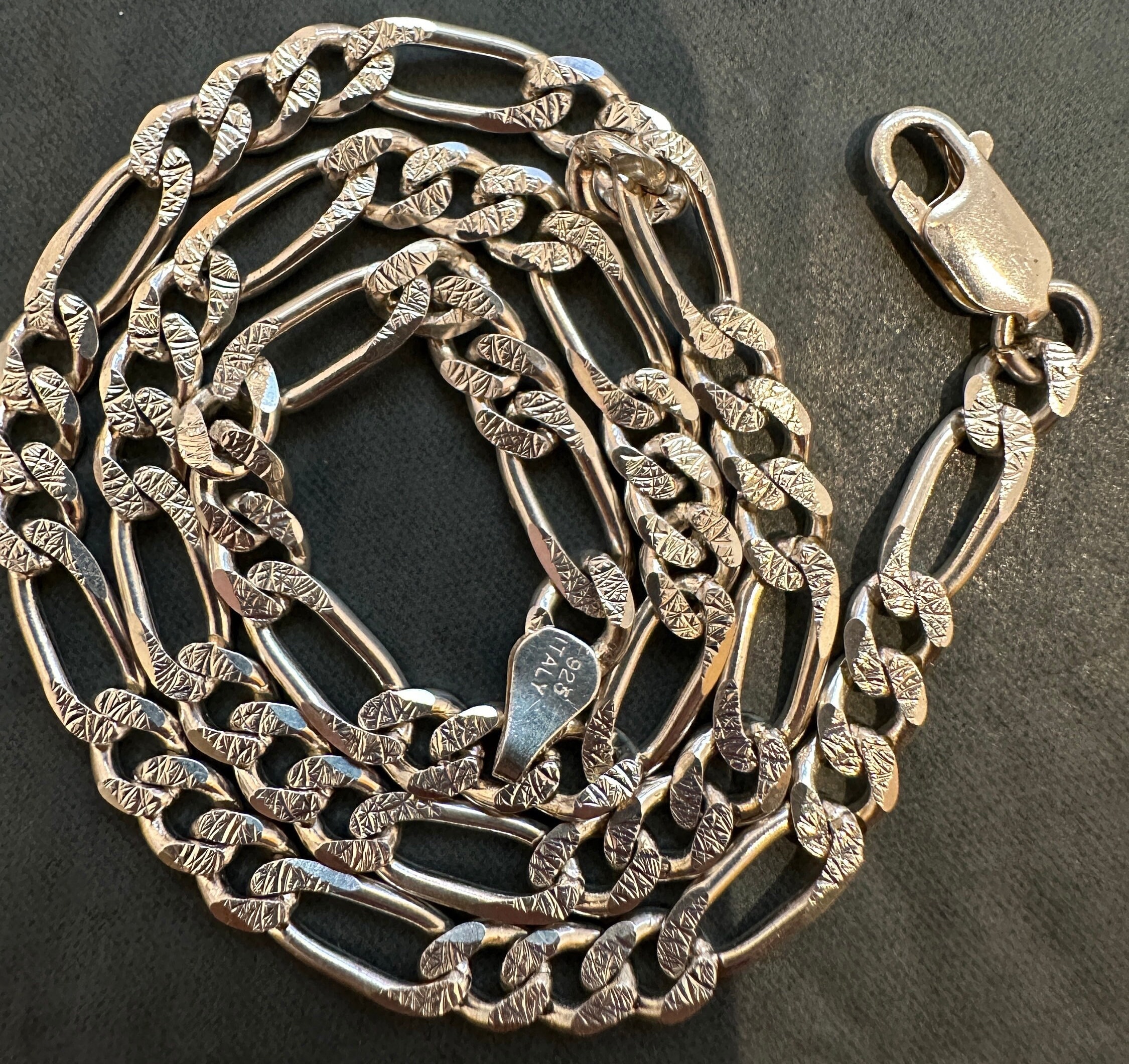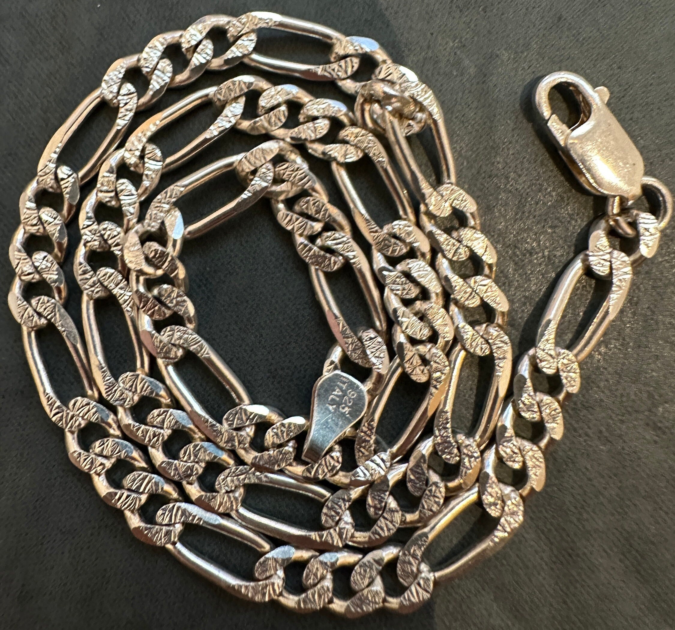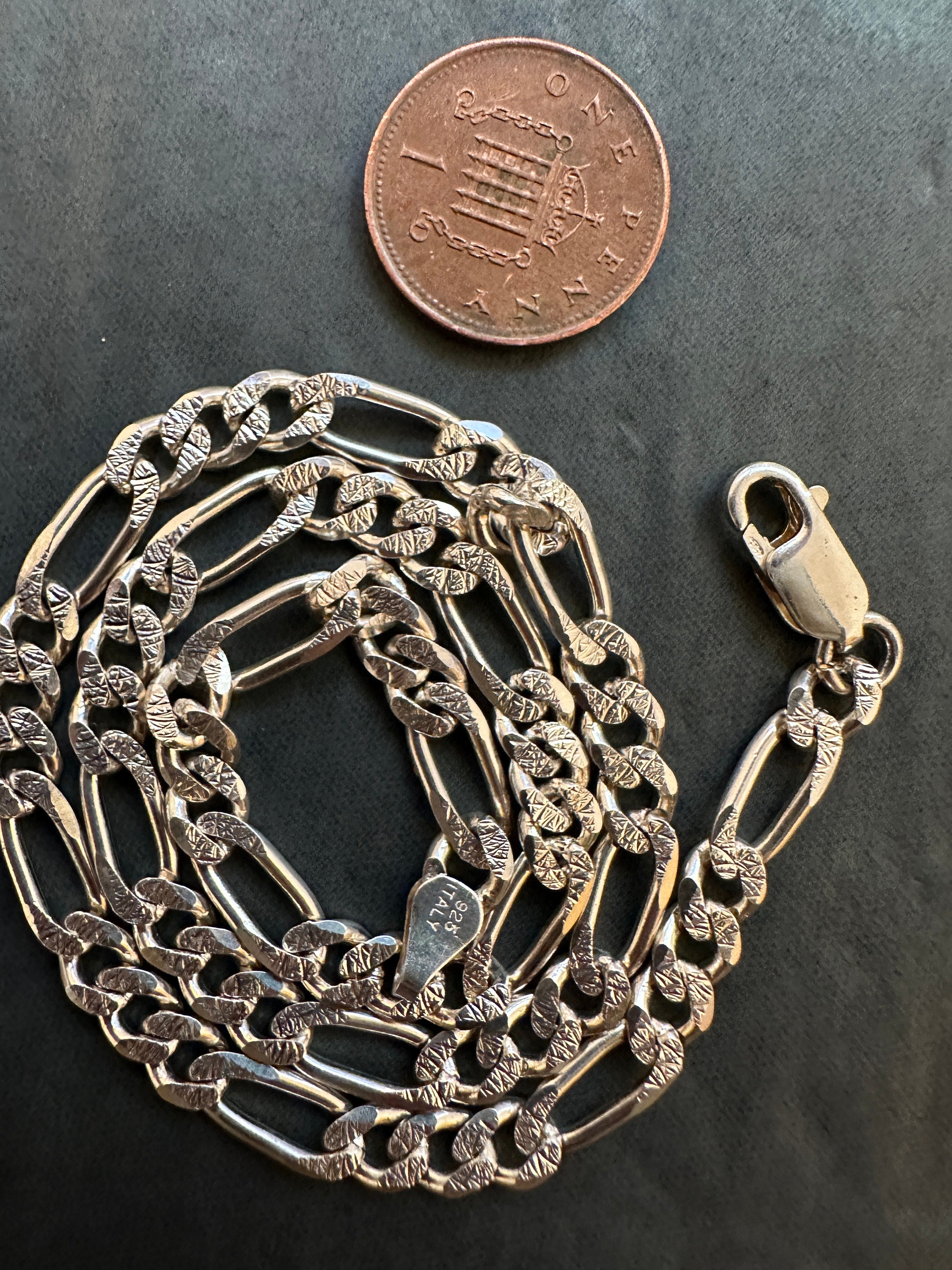 15 inch solid silver Italian Figaro link chain necklace 5mm thick 19.9 grams. Unisex silver chain