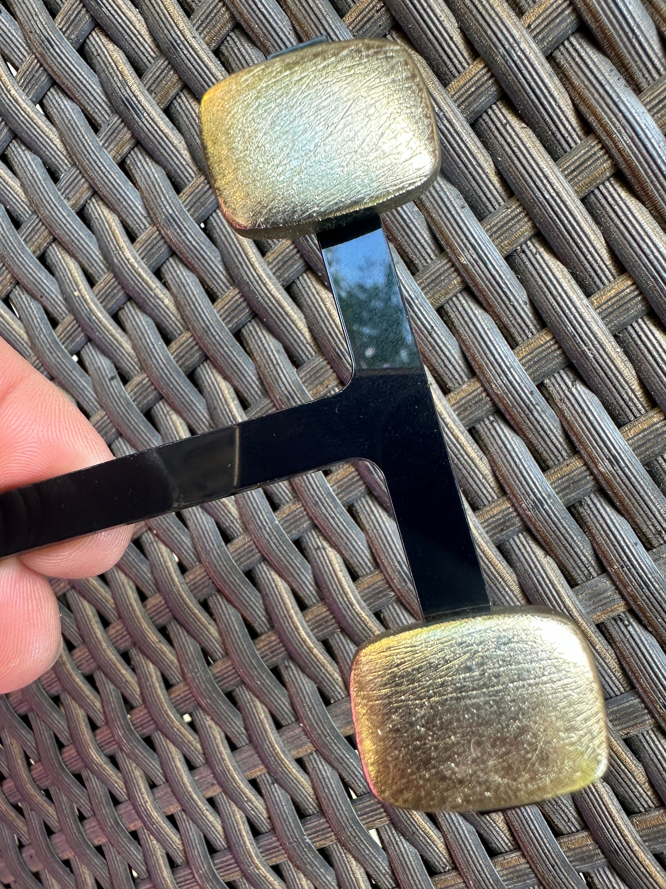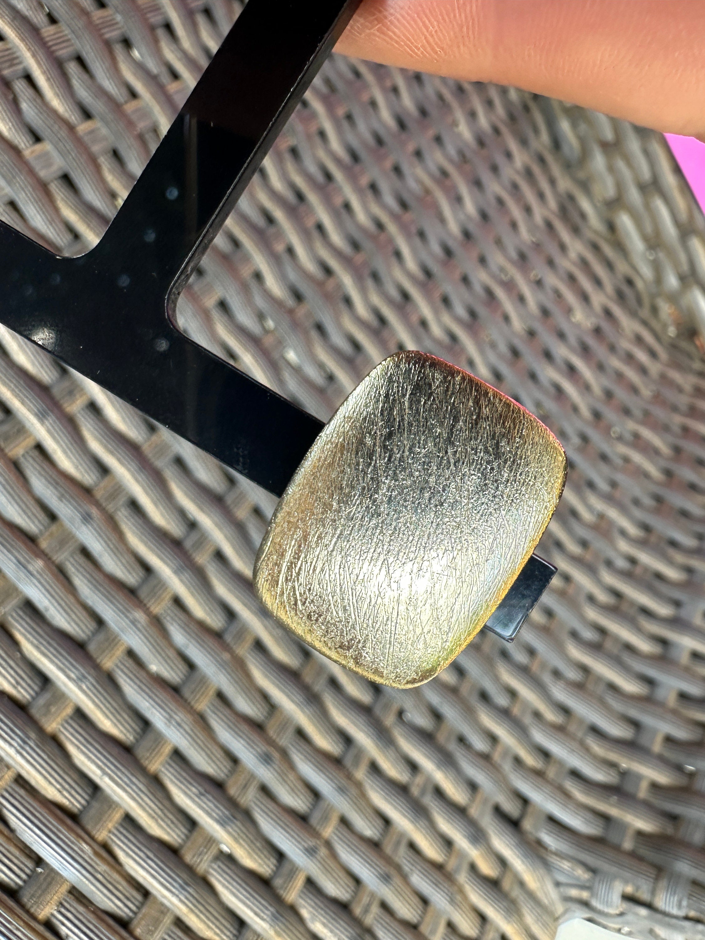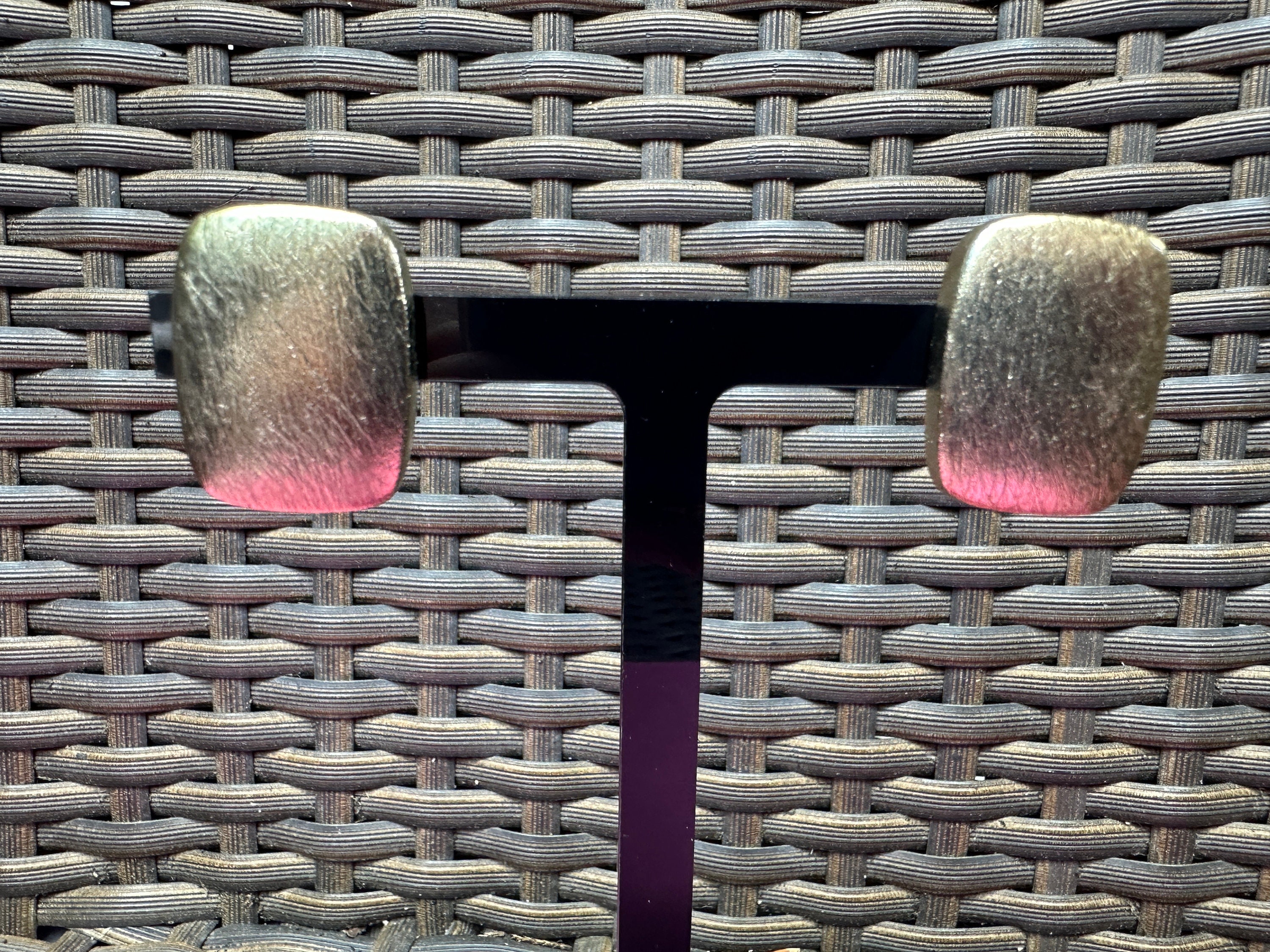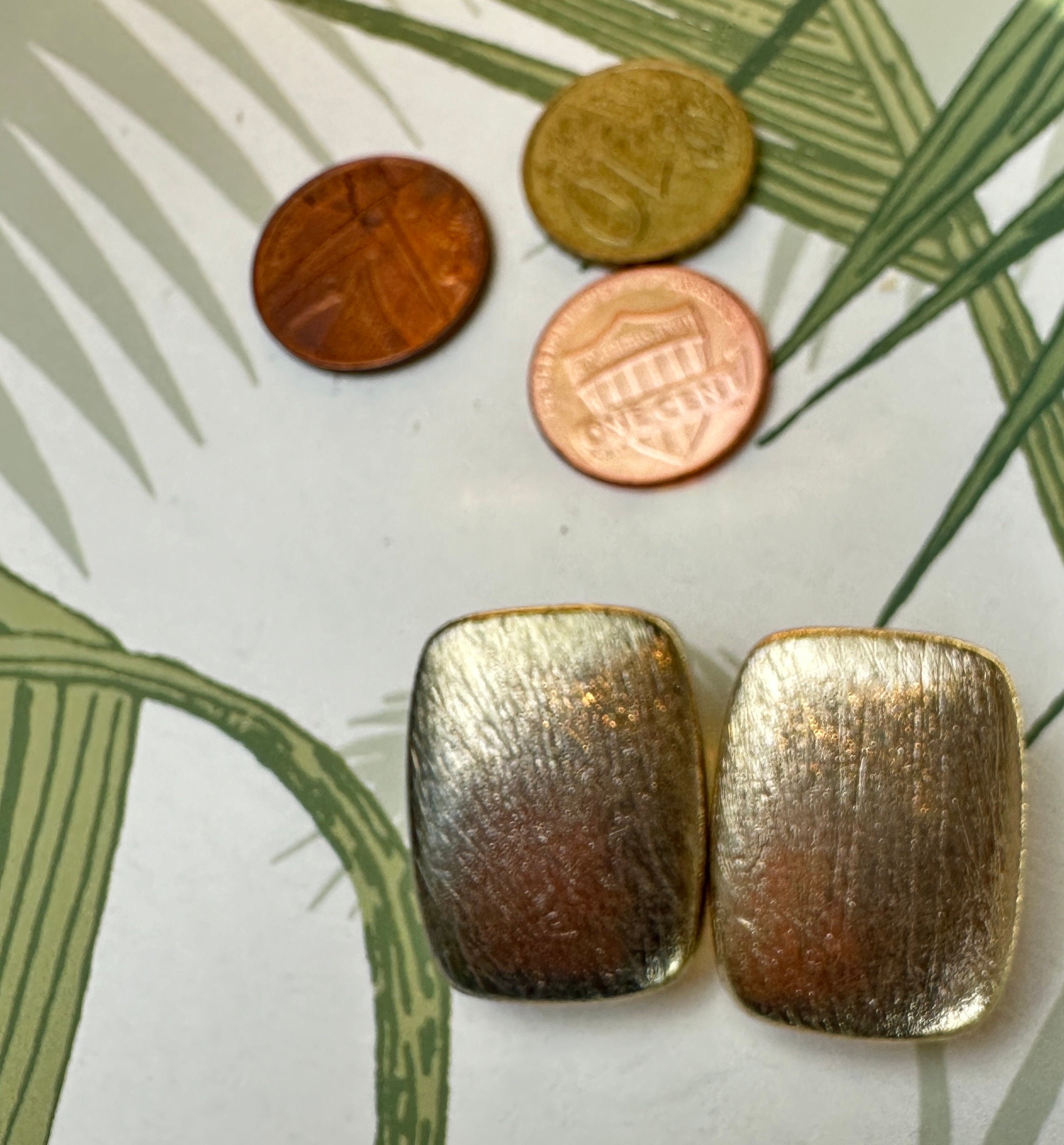 Here are a wonderful pair of vintage clip on earrings. They are made from gold toned metal which has a textured surface . These earrings measure a length of approximately 1 inches in height. They remain in excellent condition with no damage.