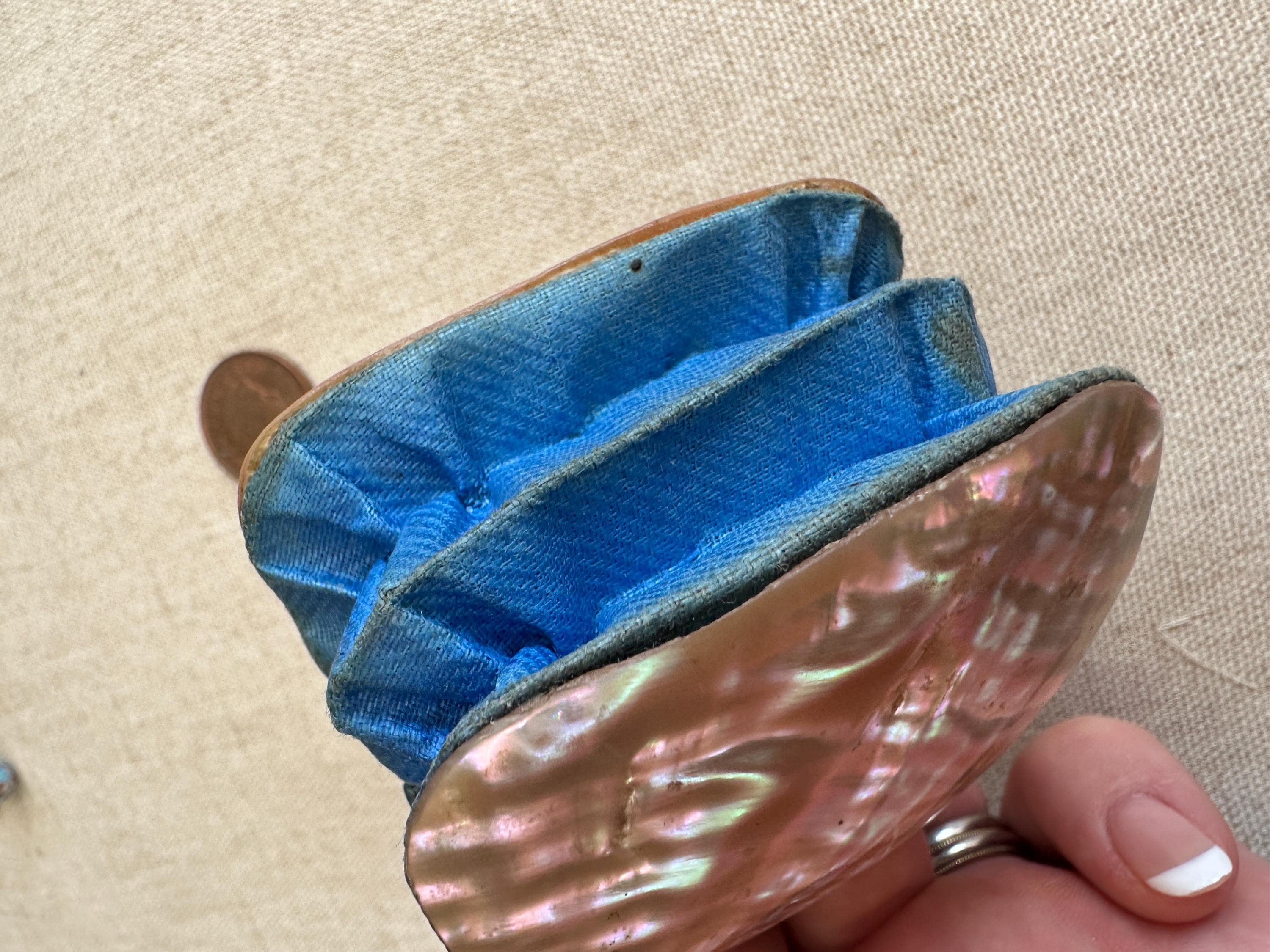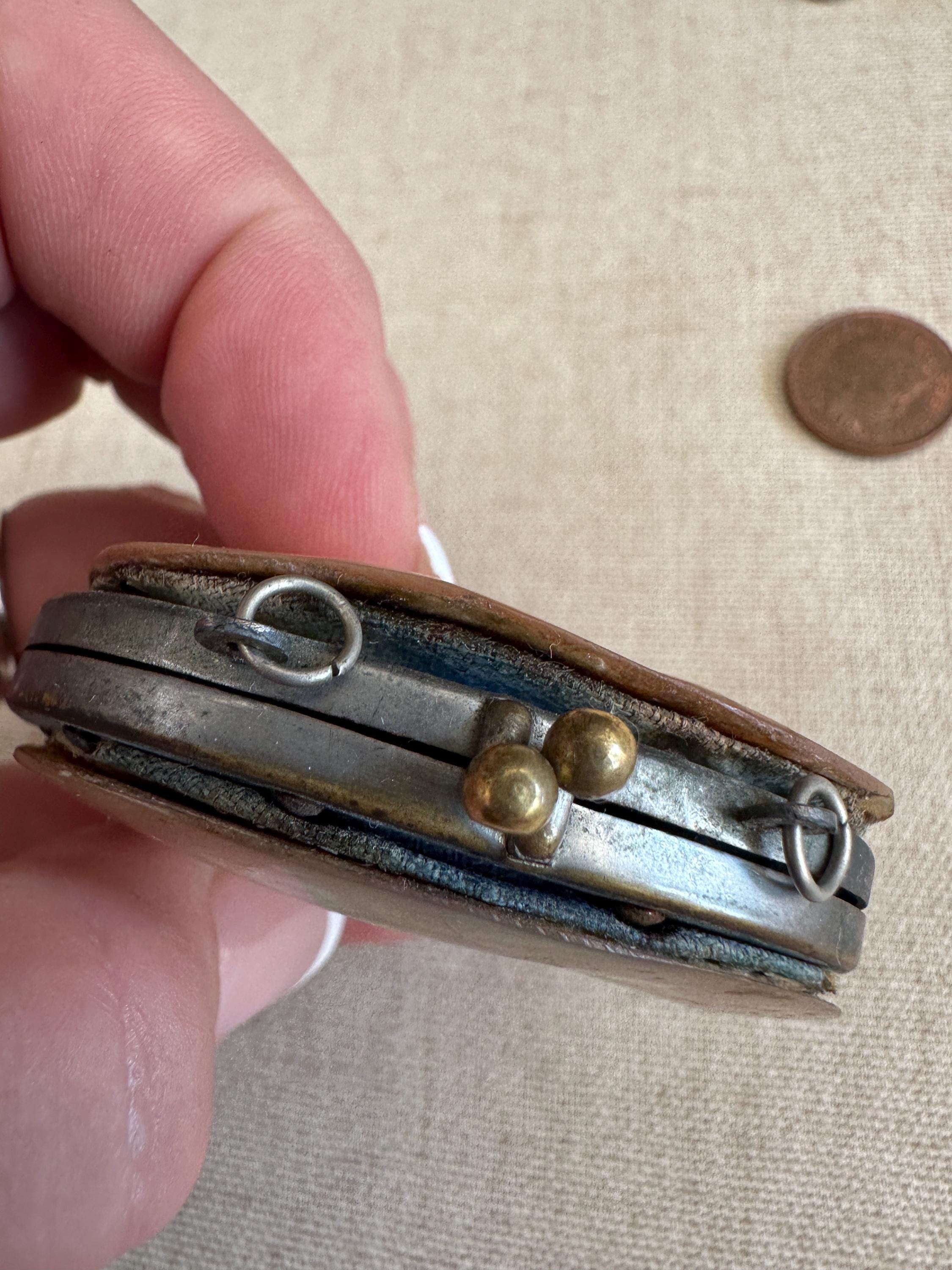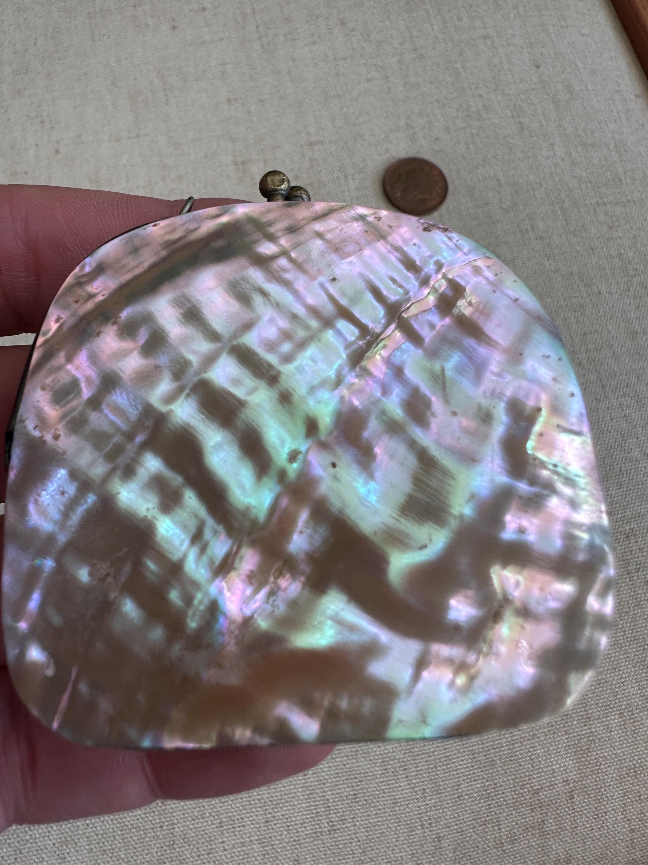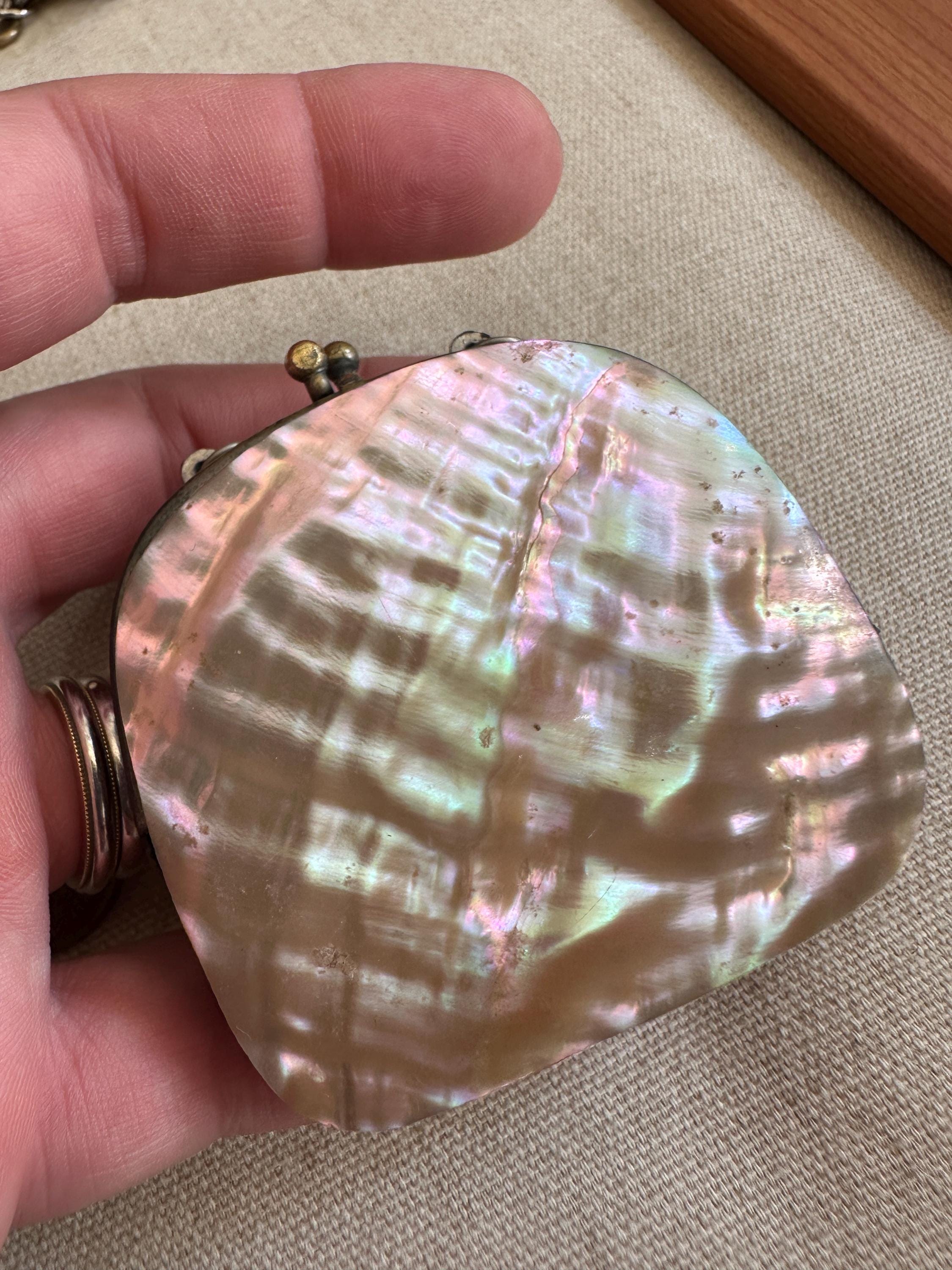 Miniature vintage mother of coin purse Chatelaine c1910. This lovely vintage coin purse measures approximately 6.5 cm in height by 6cm in length and has a depth of approximately 4cm. This piece has two hooks on which a chain would have hung and joined a chatelaine. This could easily be made into a necklace .