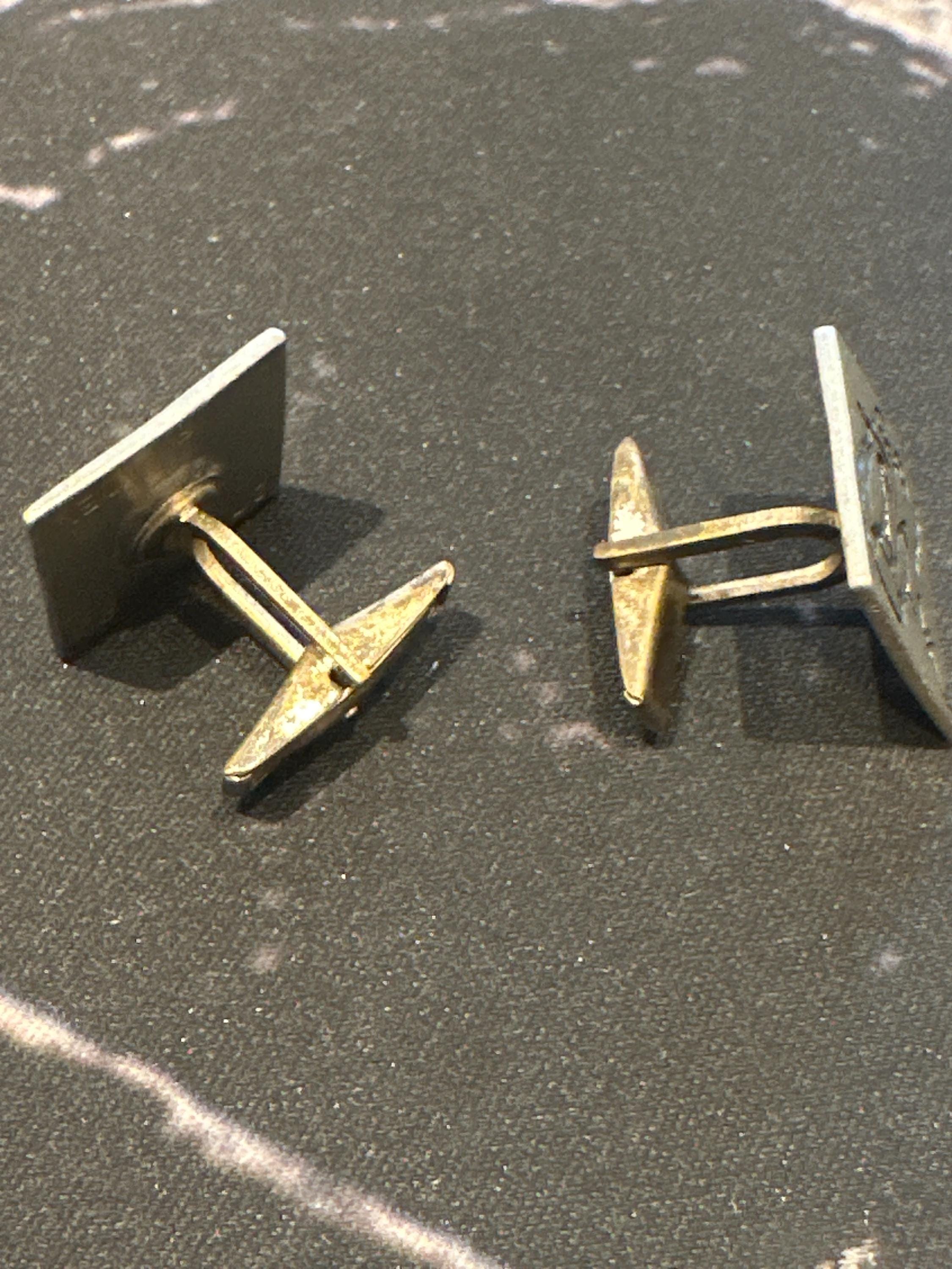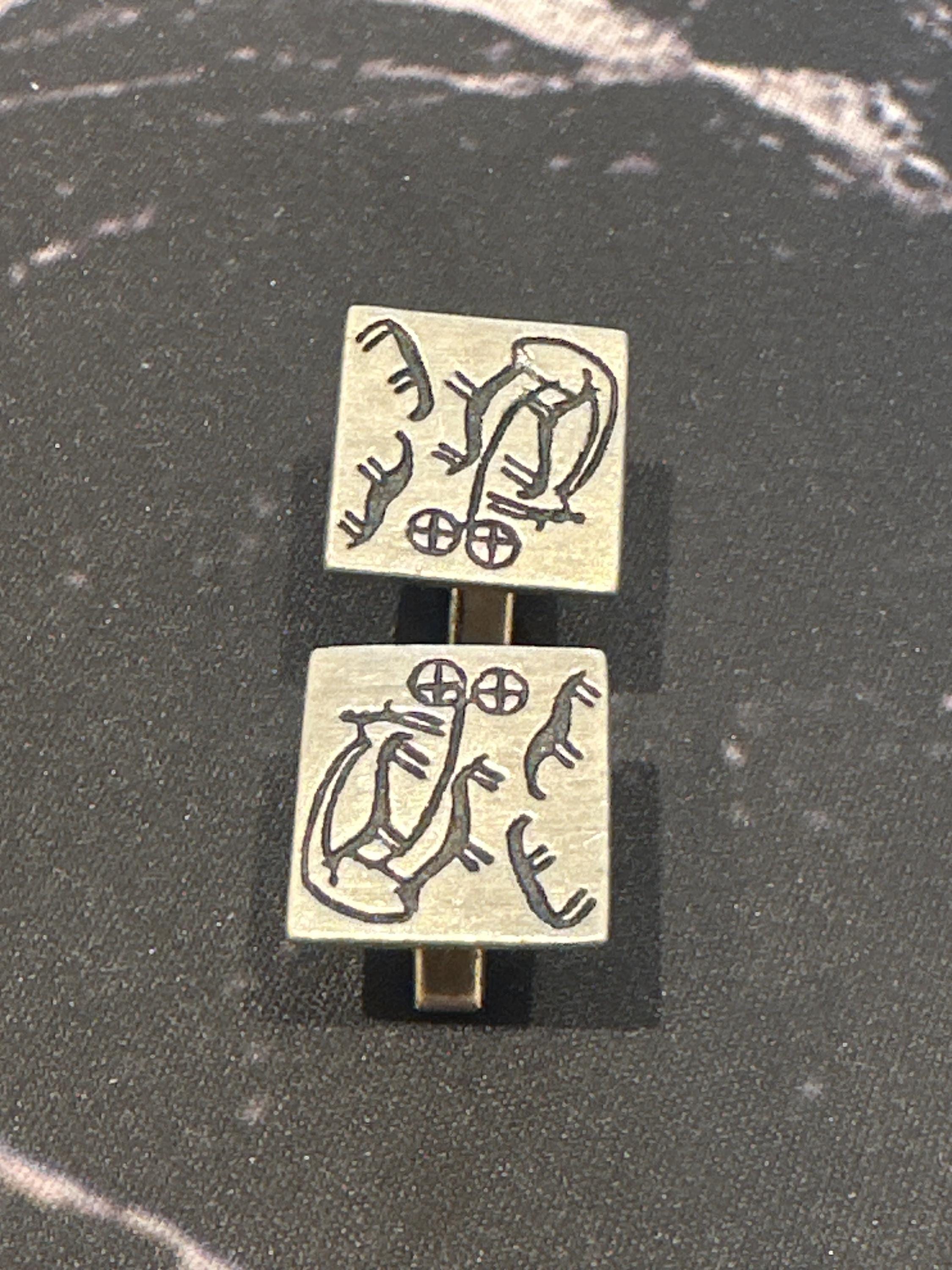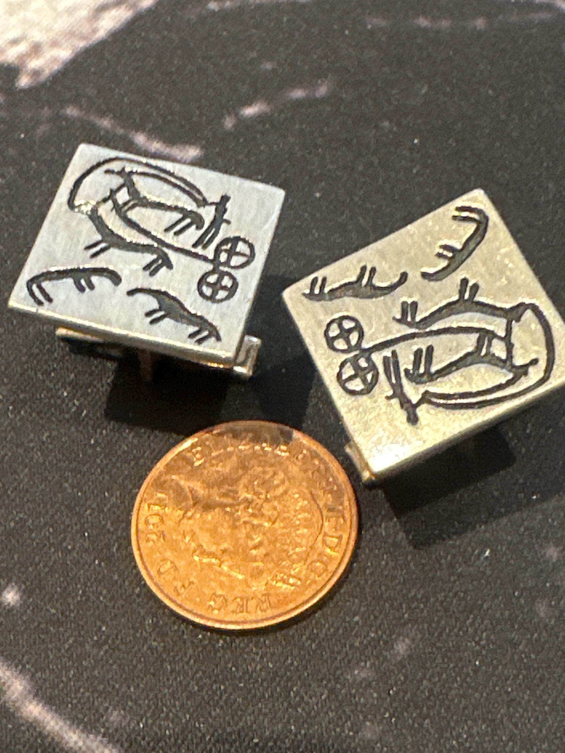 Primative design style Pewter Cufflinks marked SWEDEN. These are hand made. They measure approximately 2cm by 2cm.