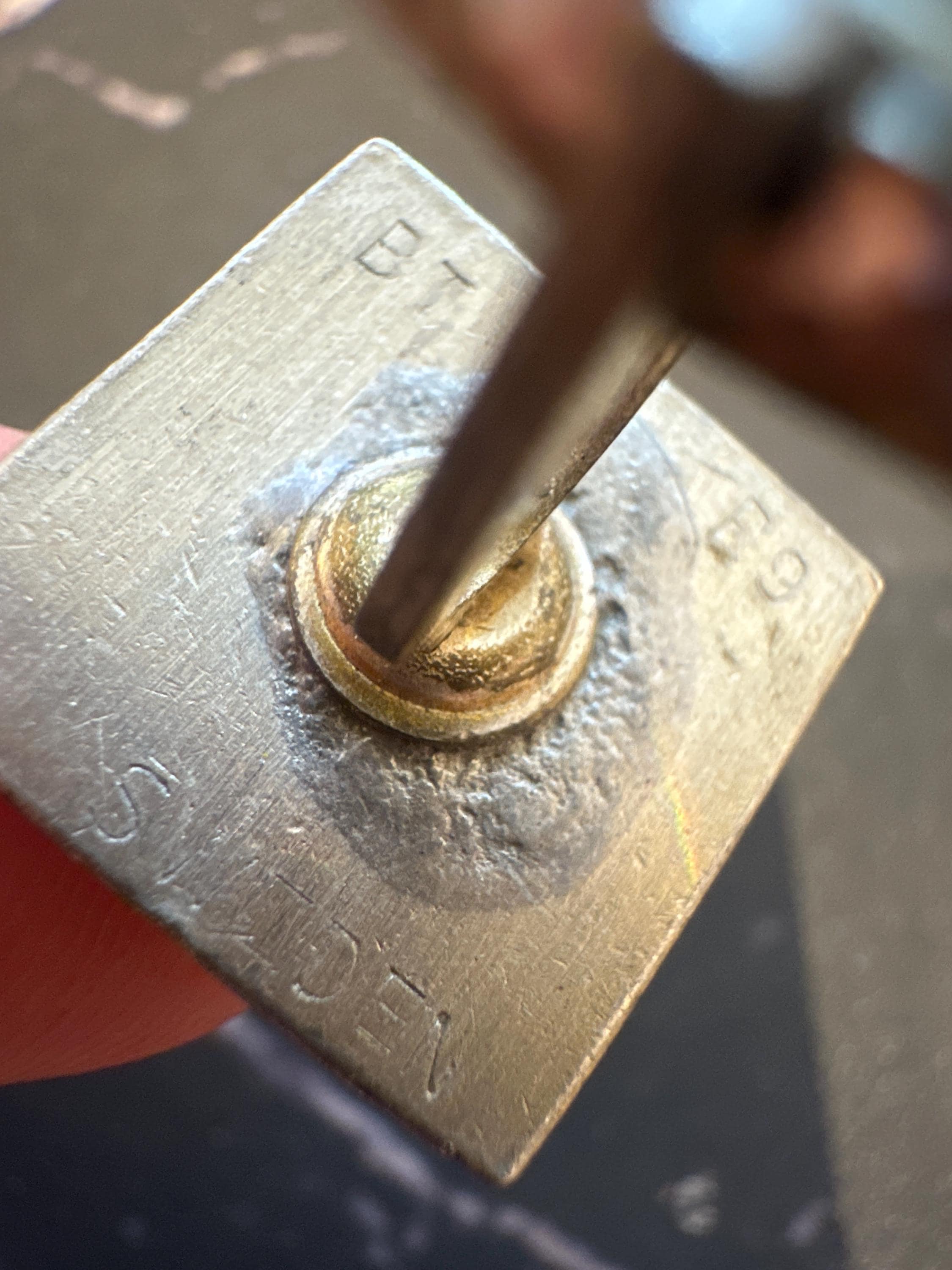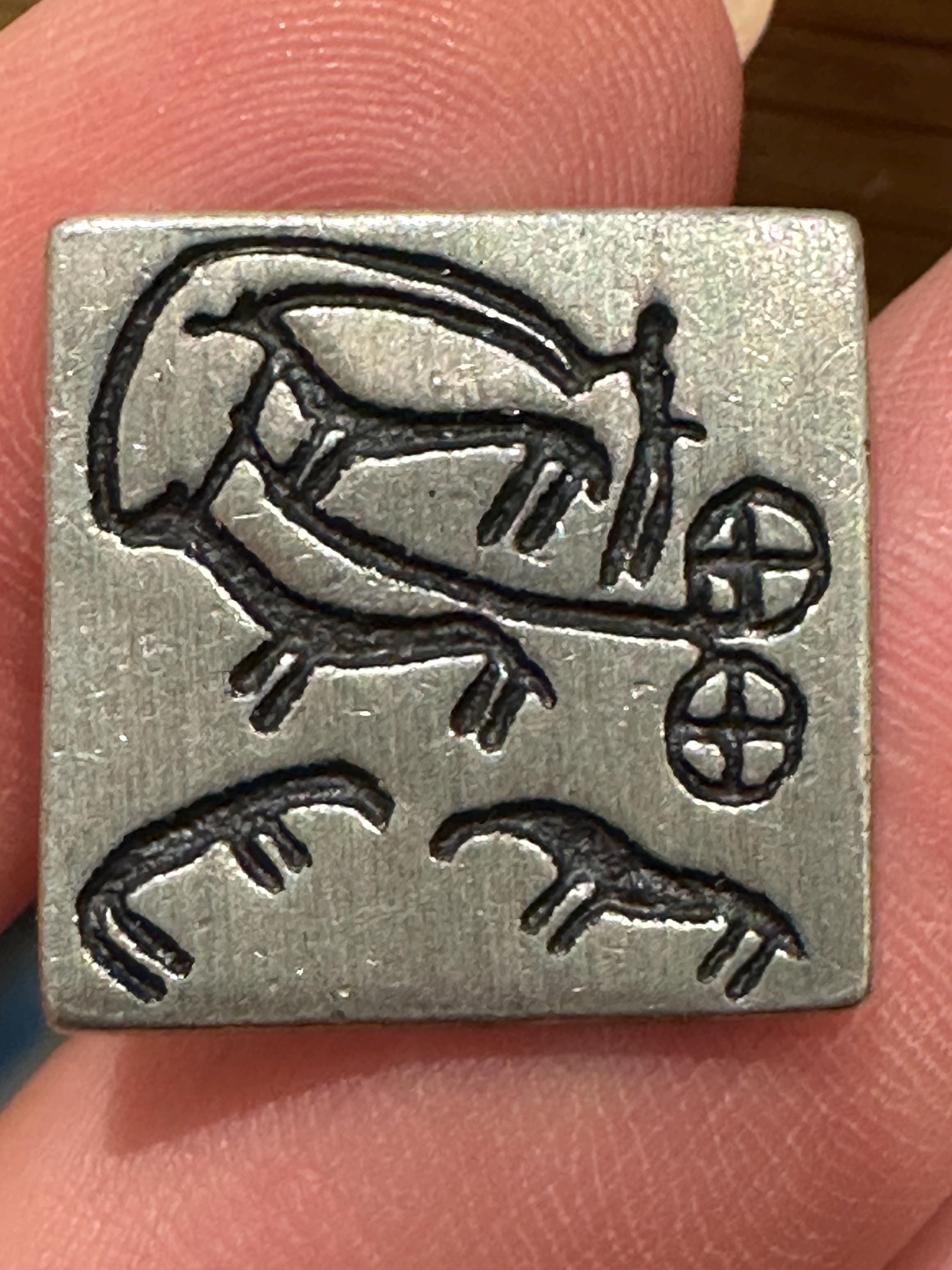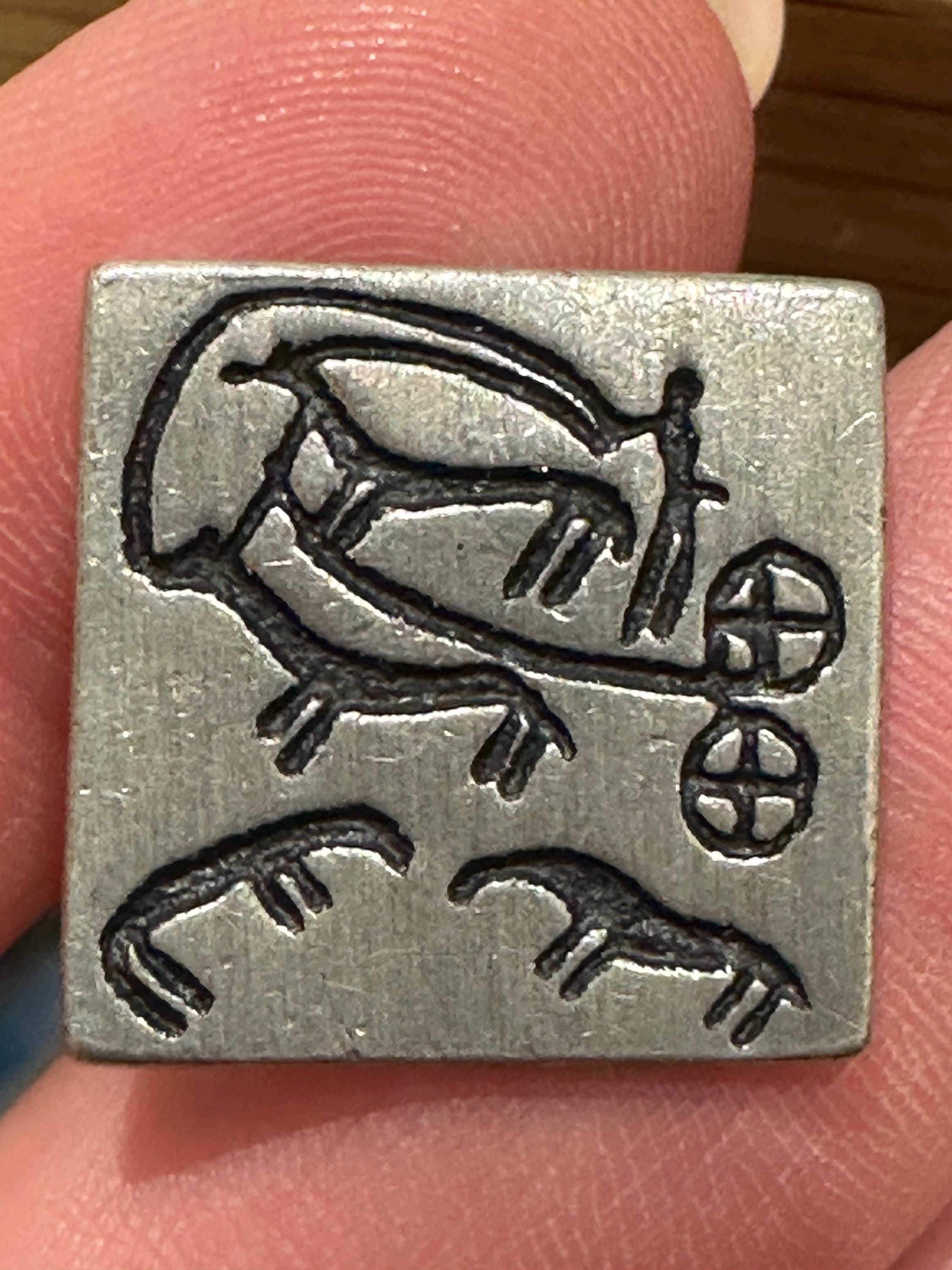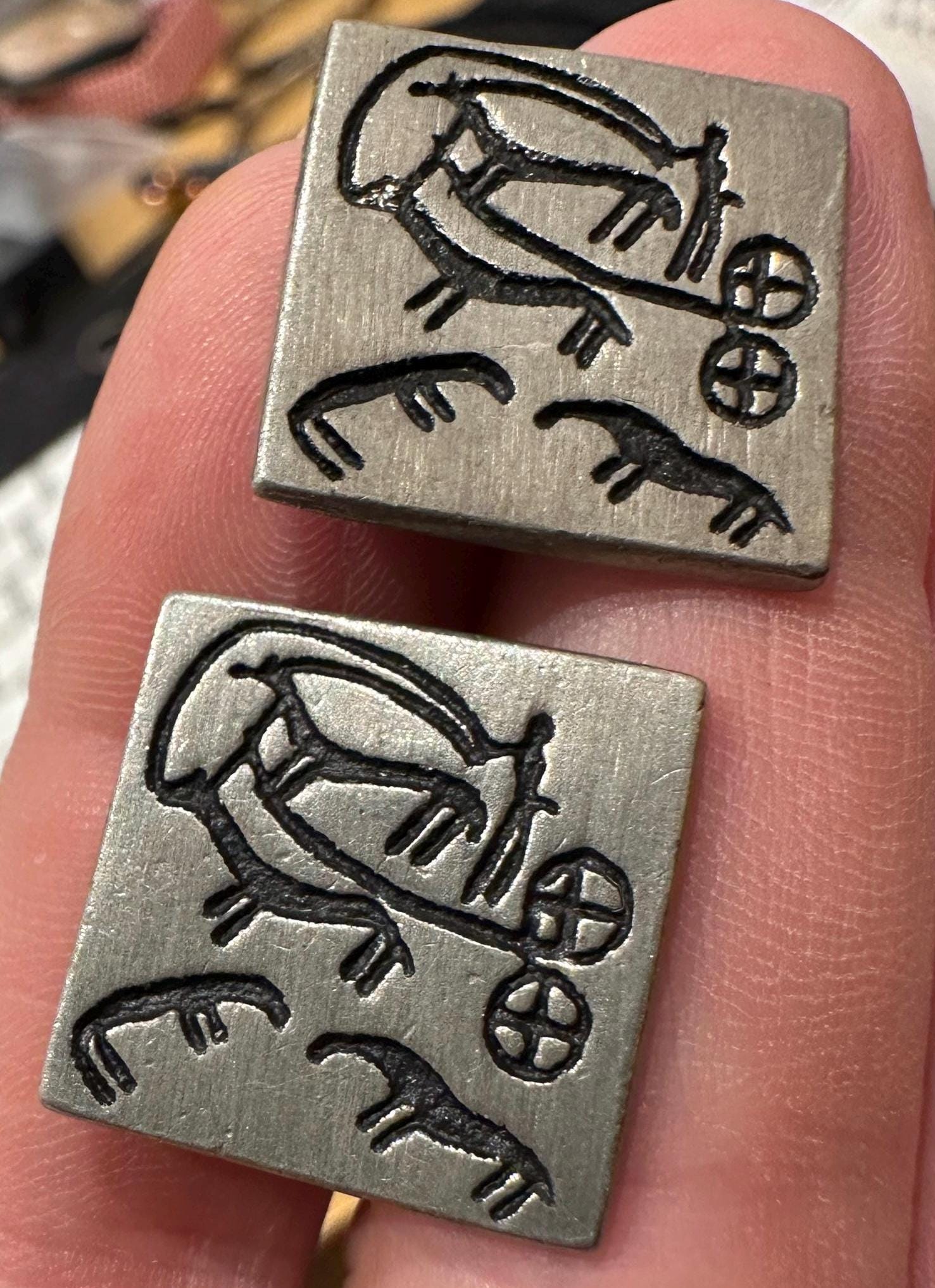 Primative design style Pewter Cufflinks marked SWEDEN. These are hand made. They measure approximately 2cm by 2cm.