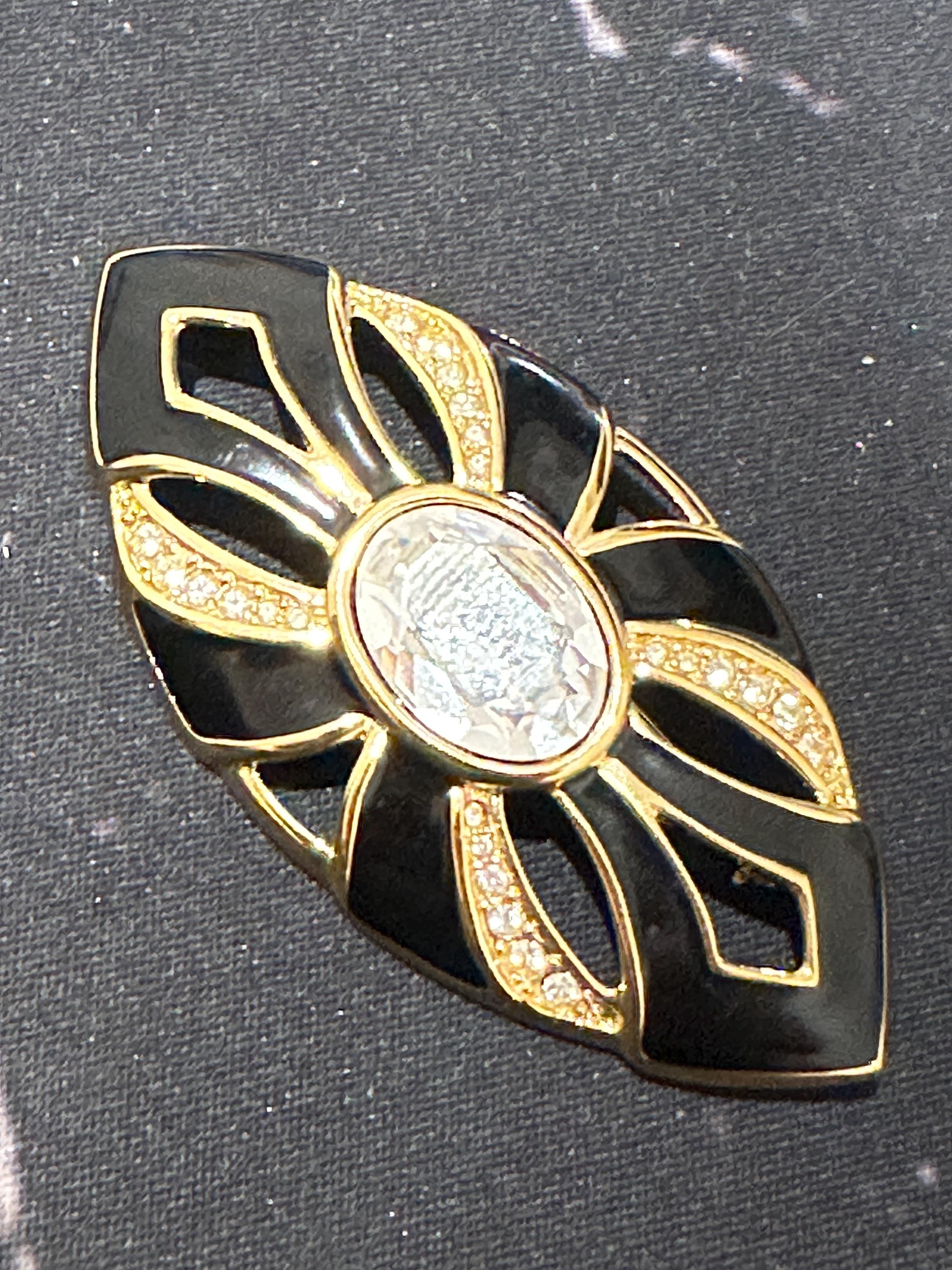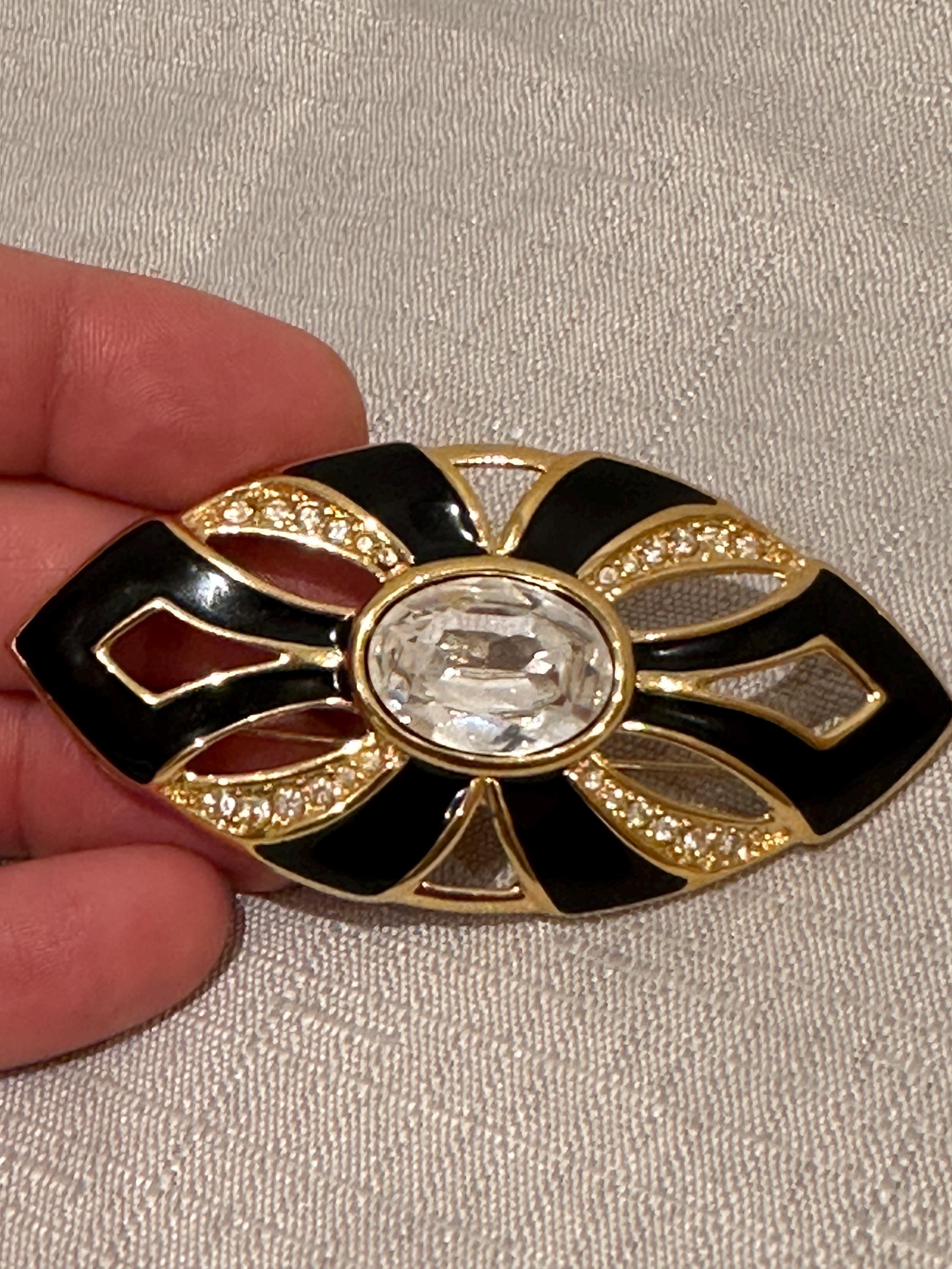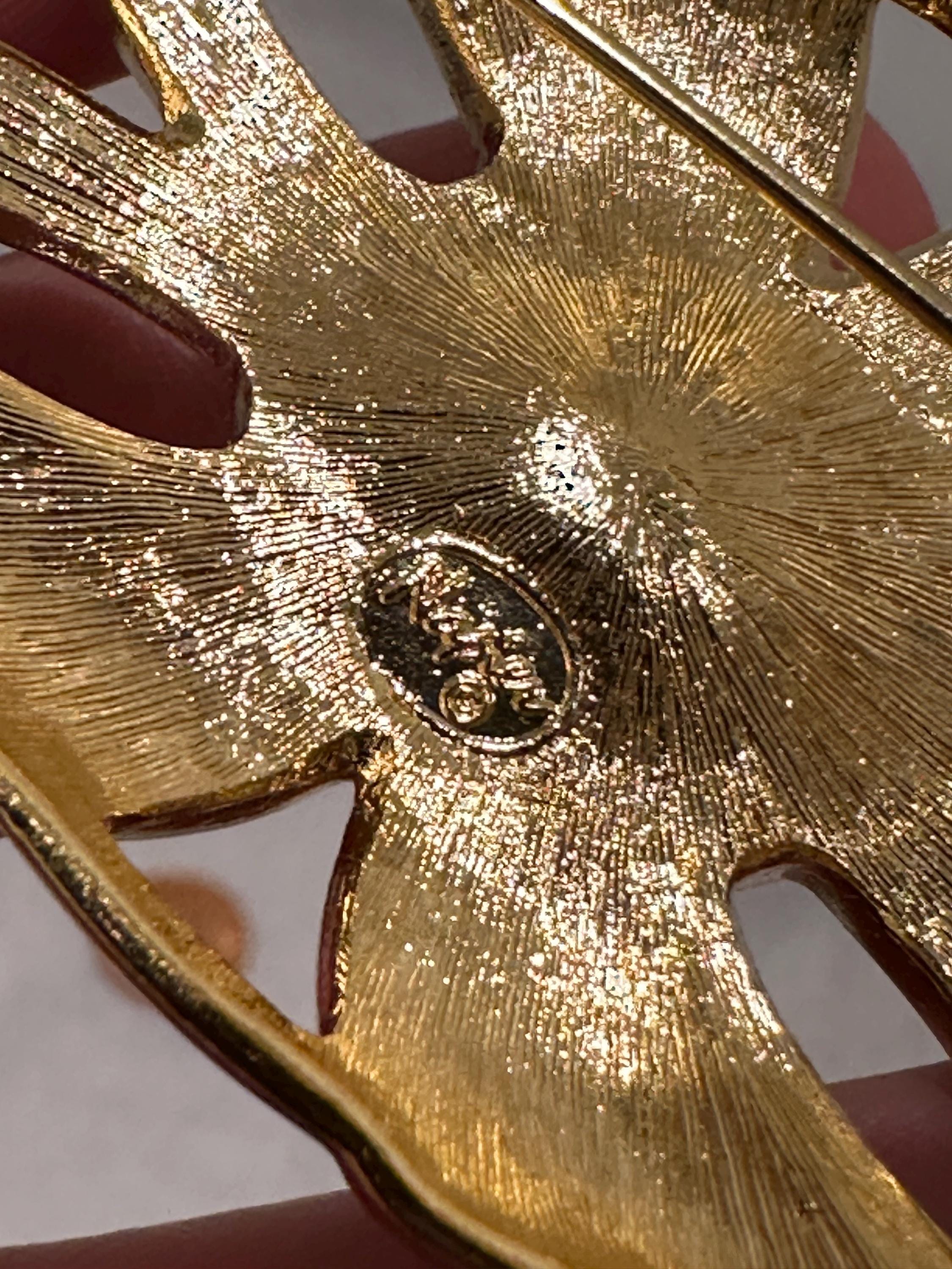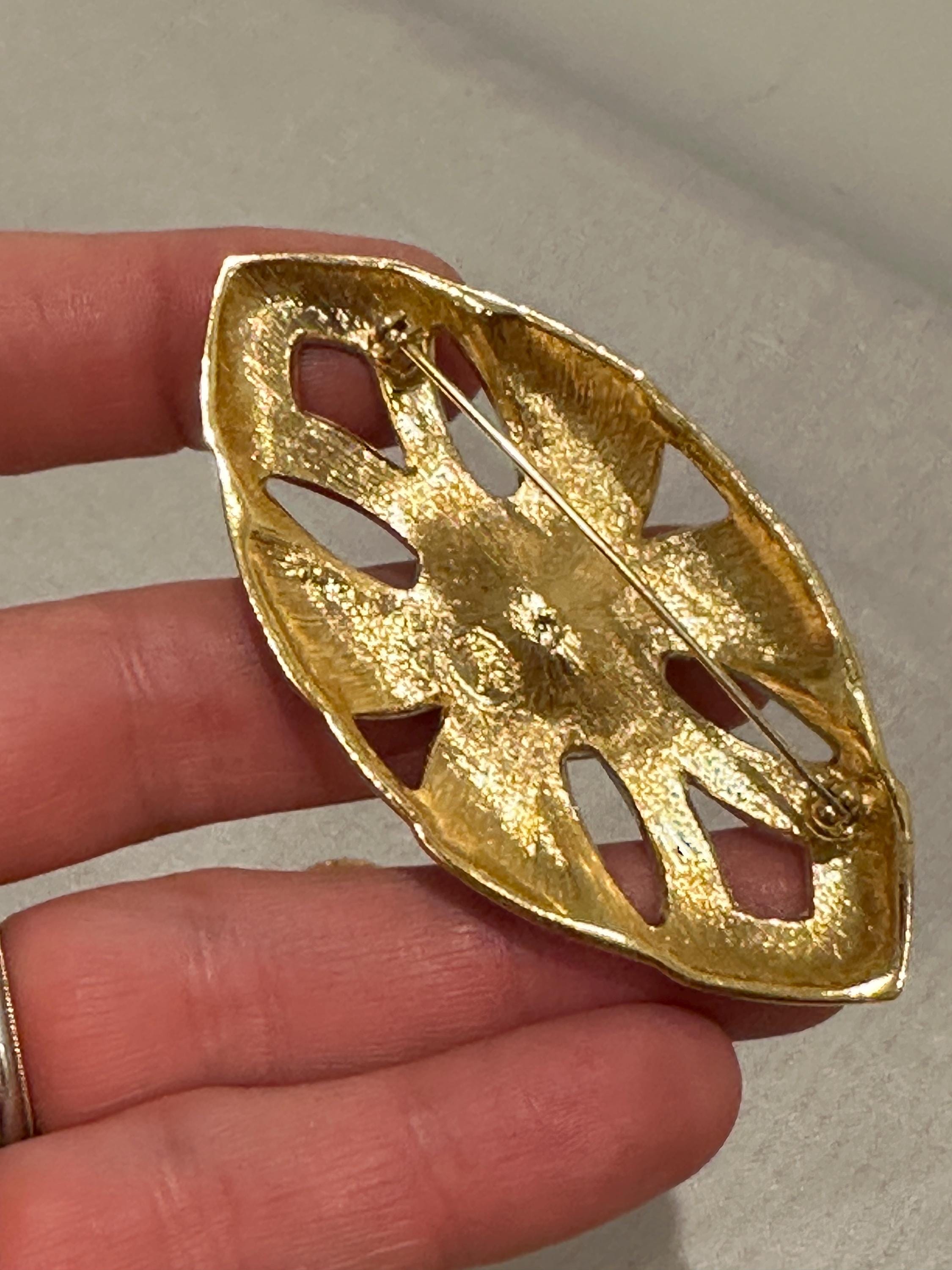 Fabulous gold plated statement piece brooch signed by makers Napier. It measures 3inches in length and 1.5 inches in width.