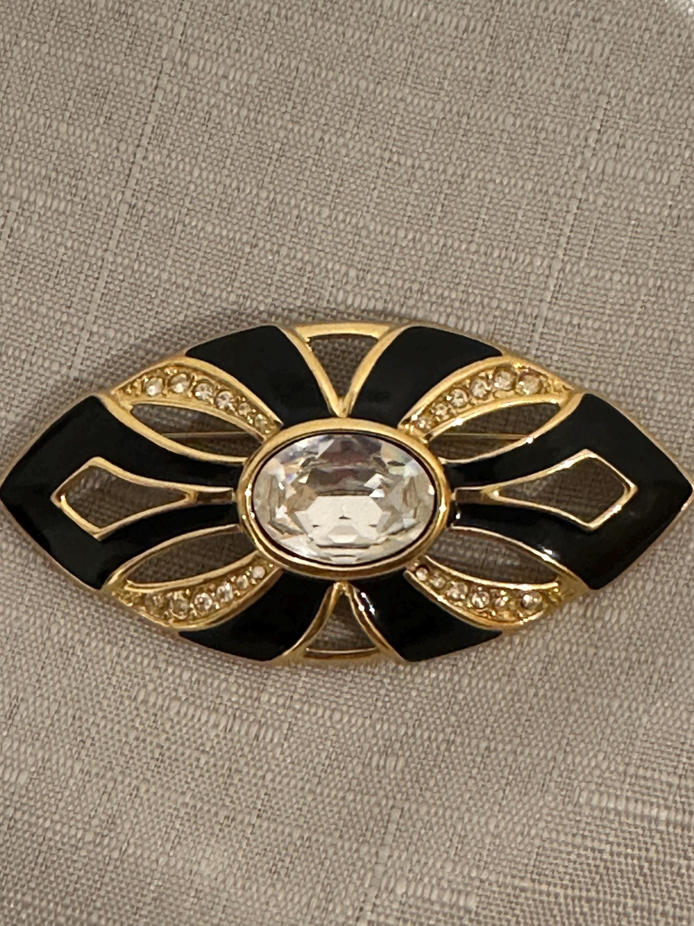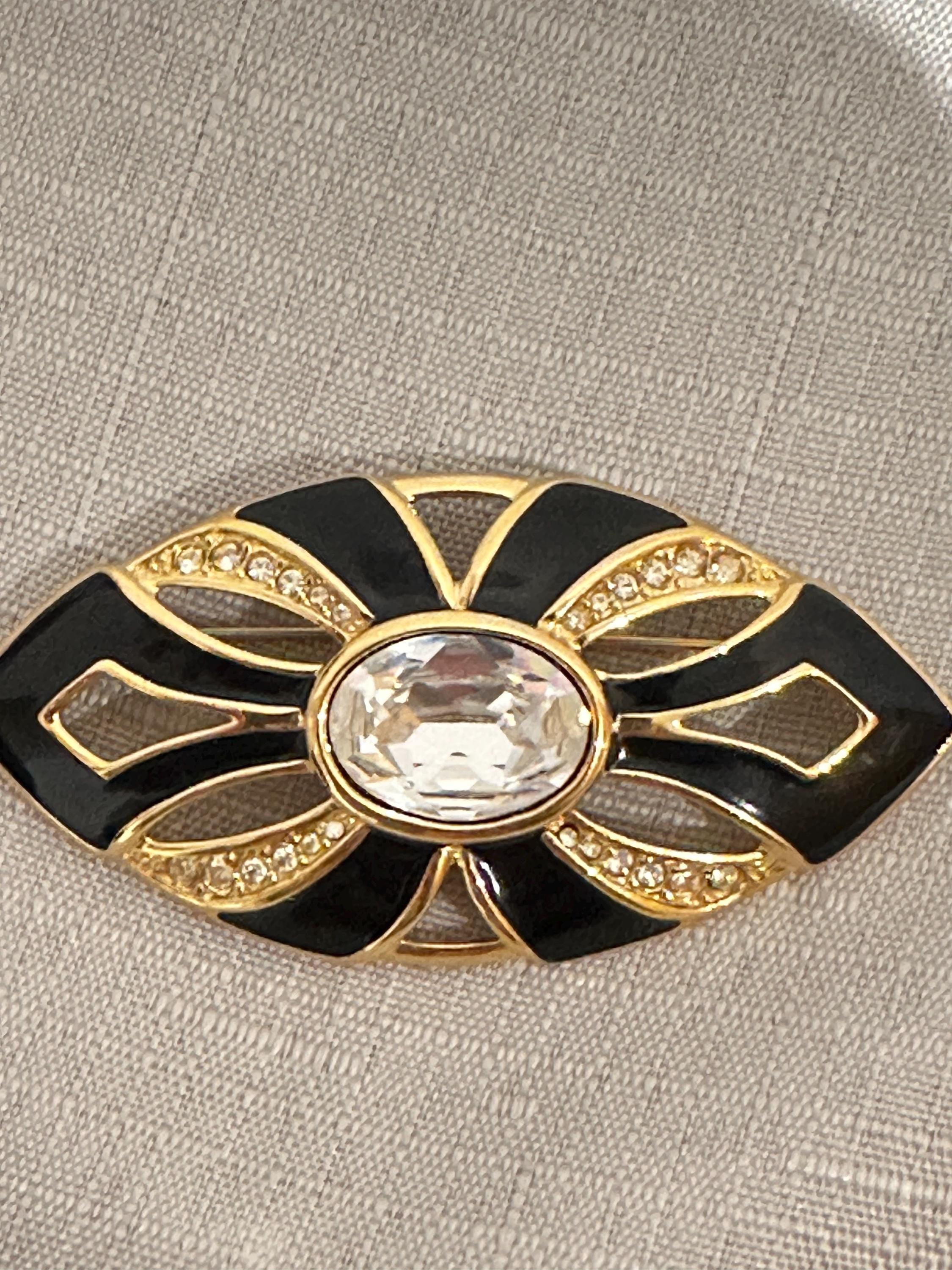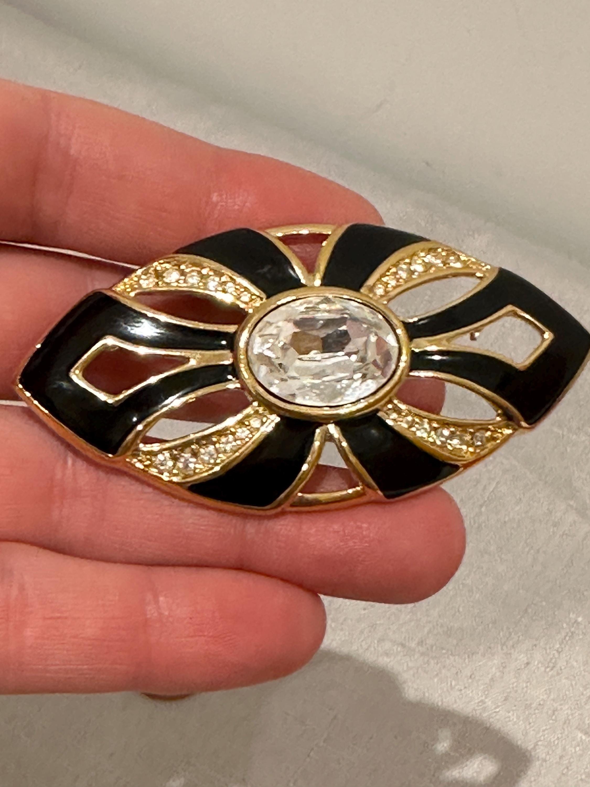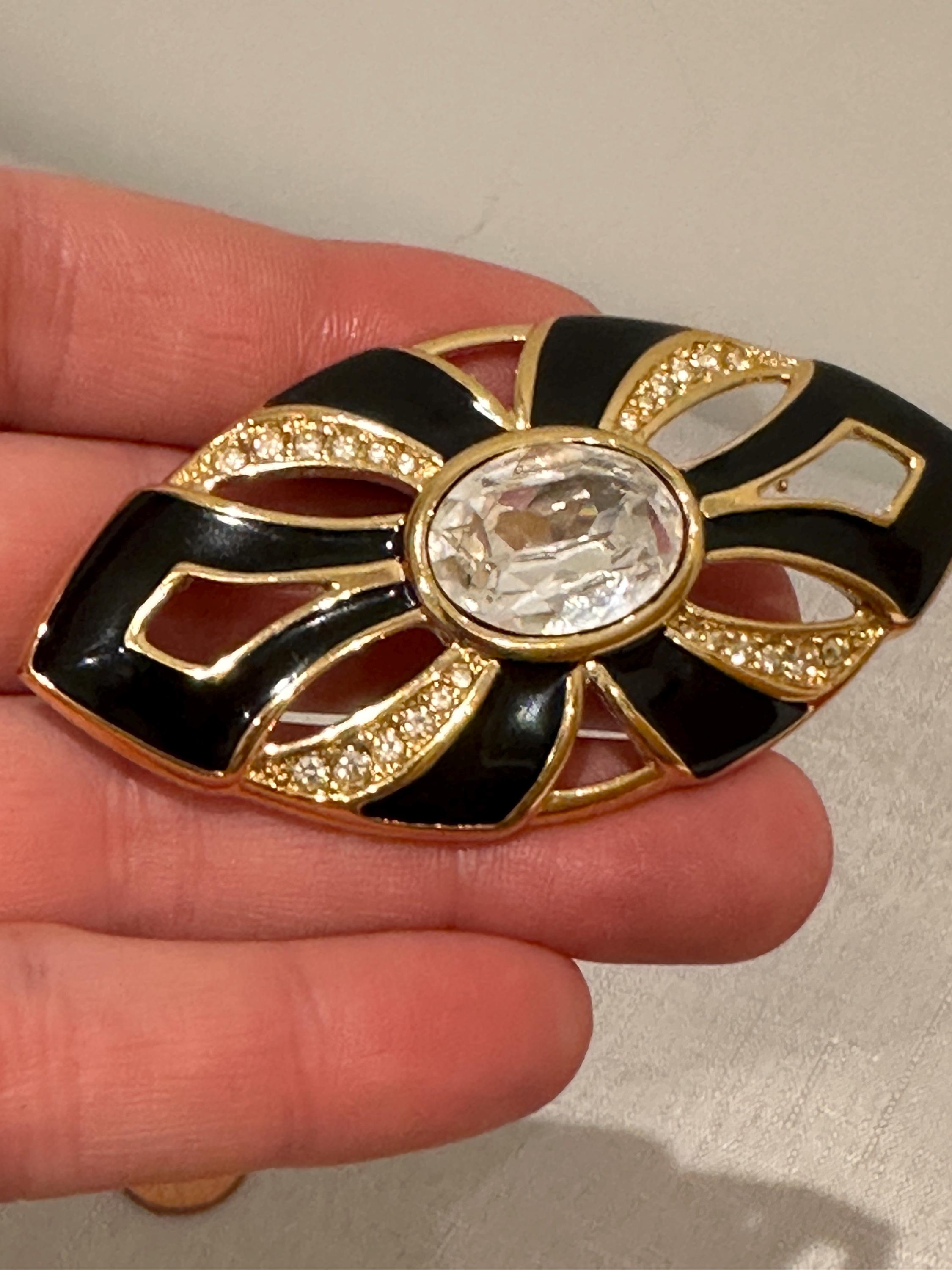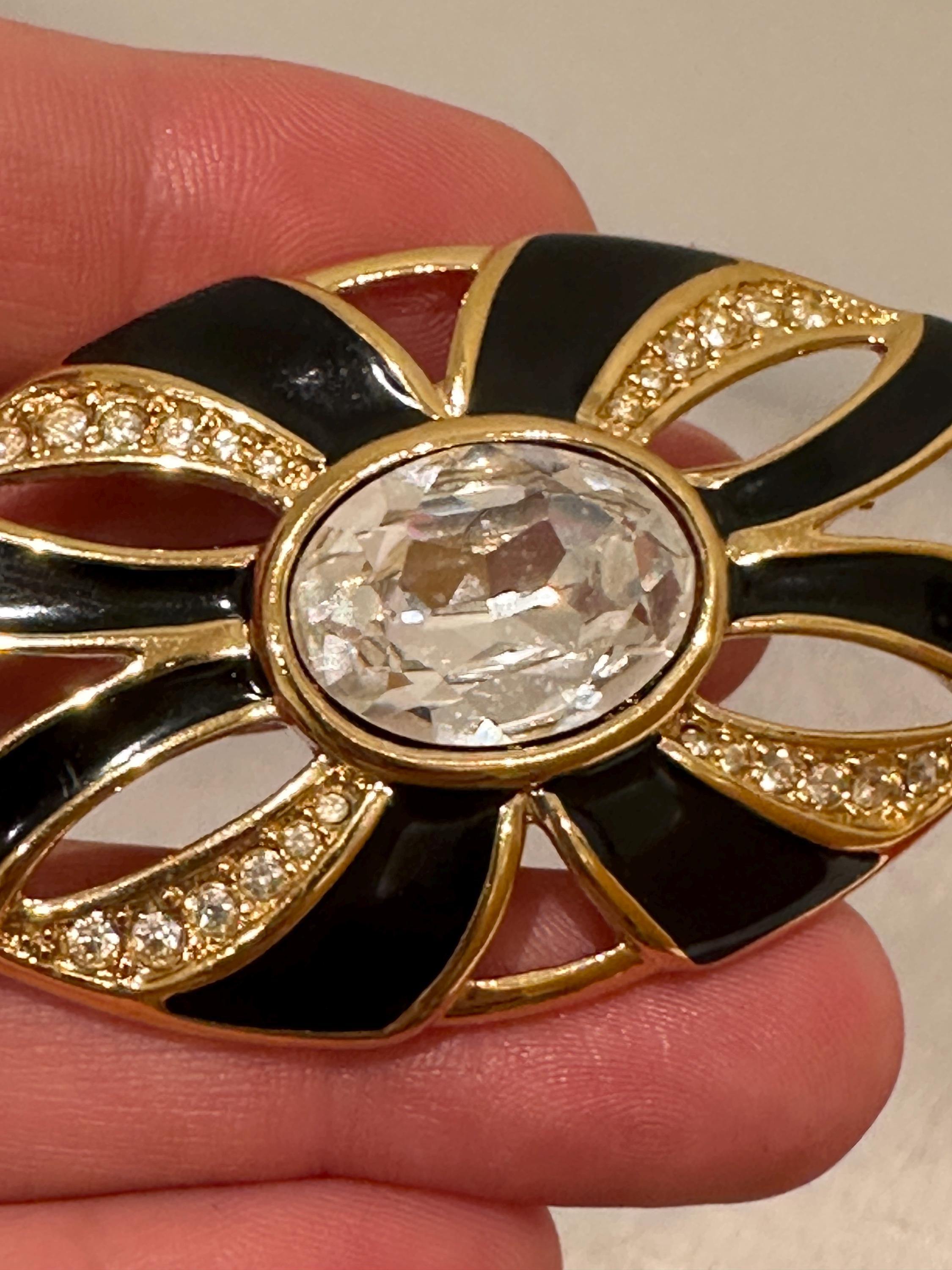 Fabulous gold plated statement piece brooch signed by makers Napier. It measures 3inches in length and 1.5 inches in width.