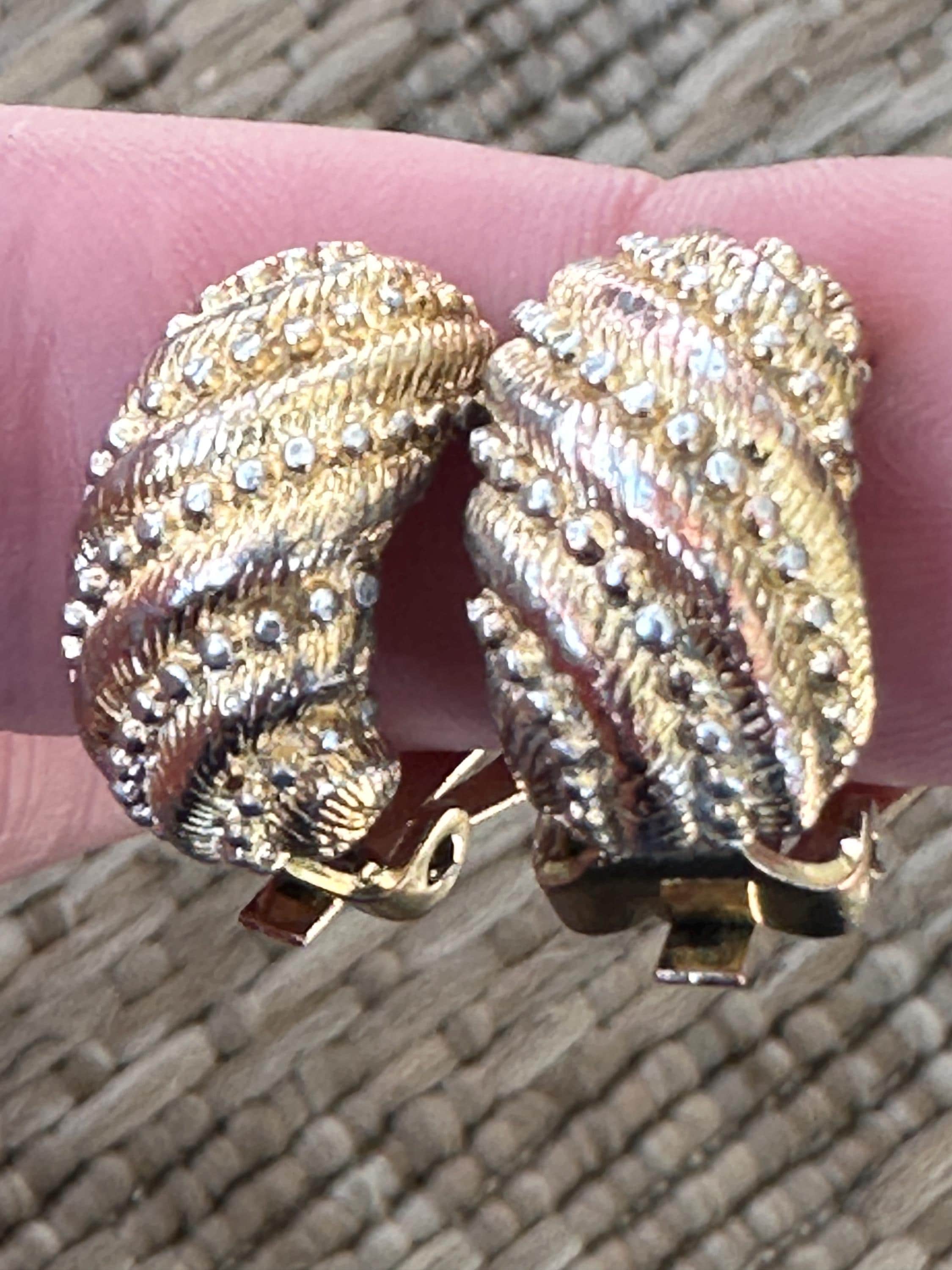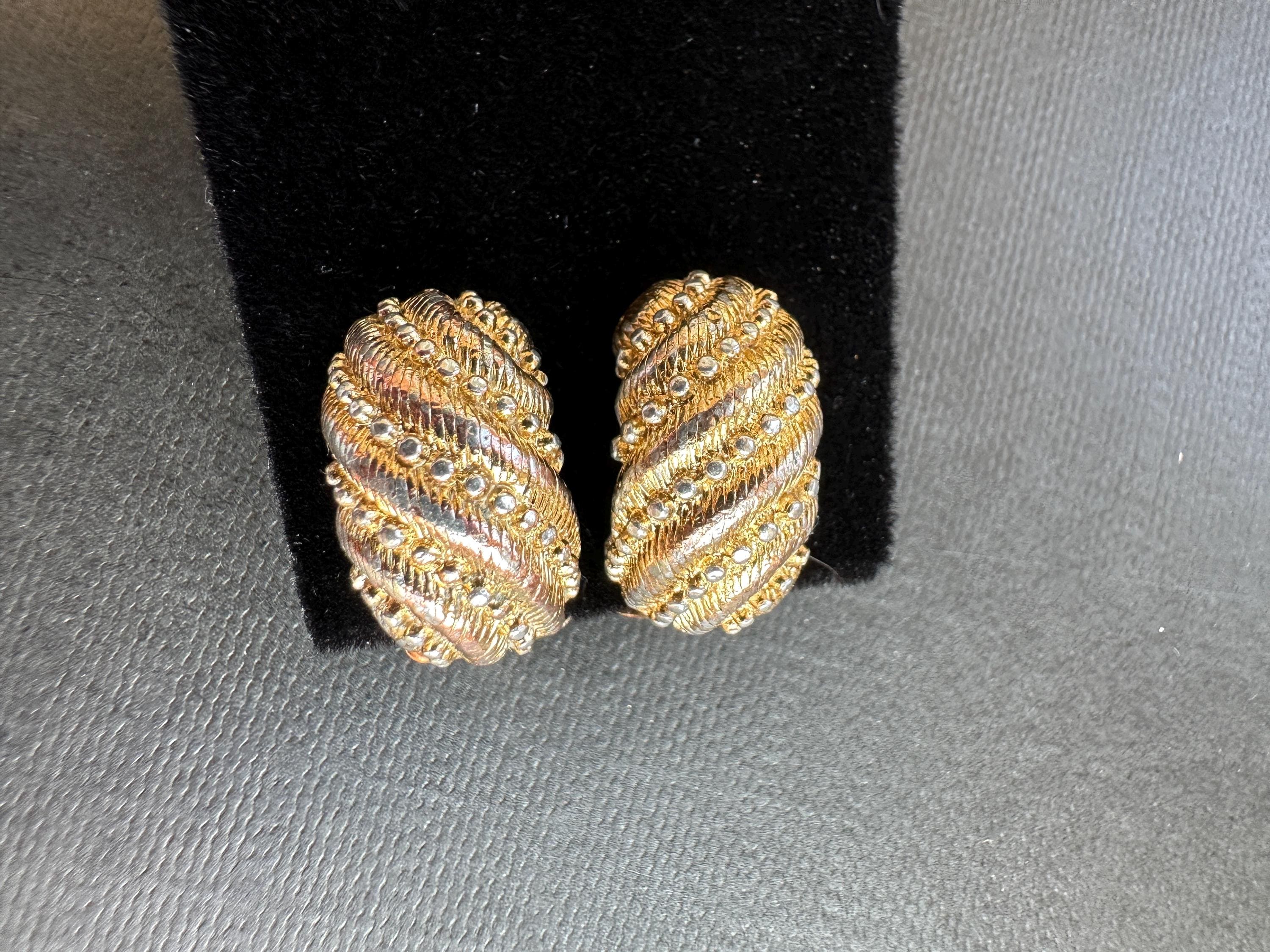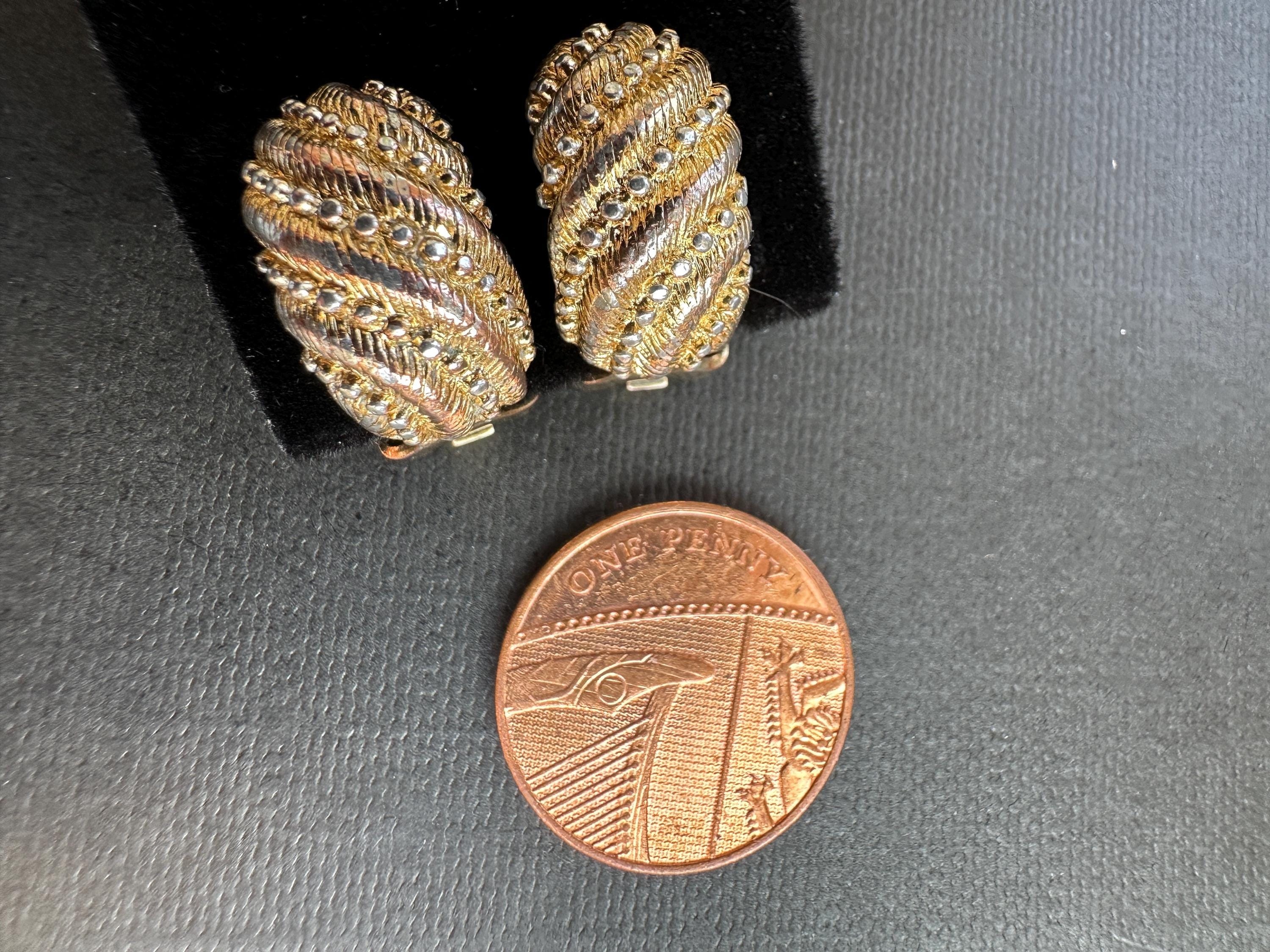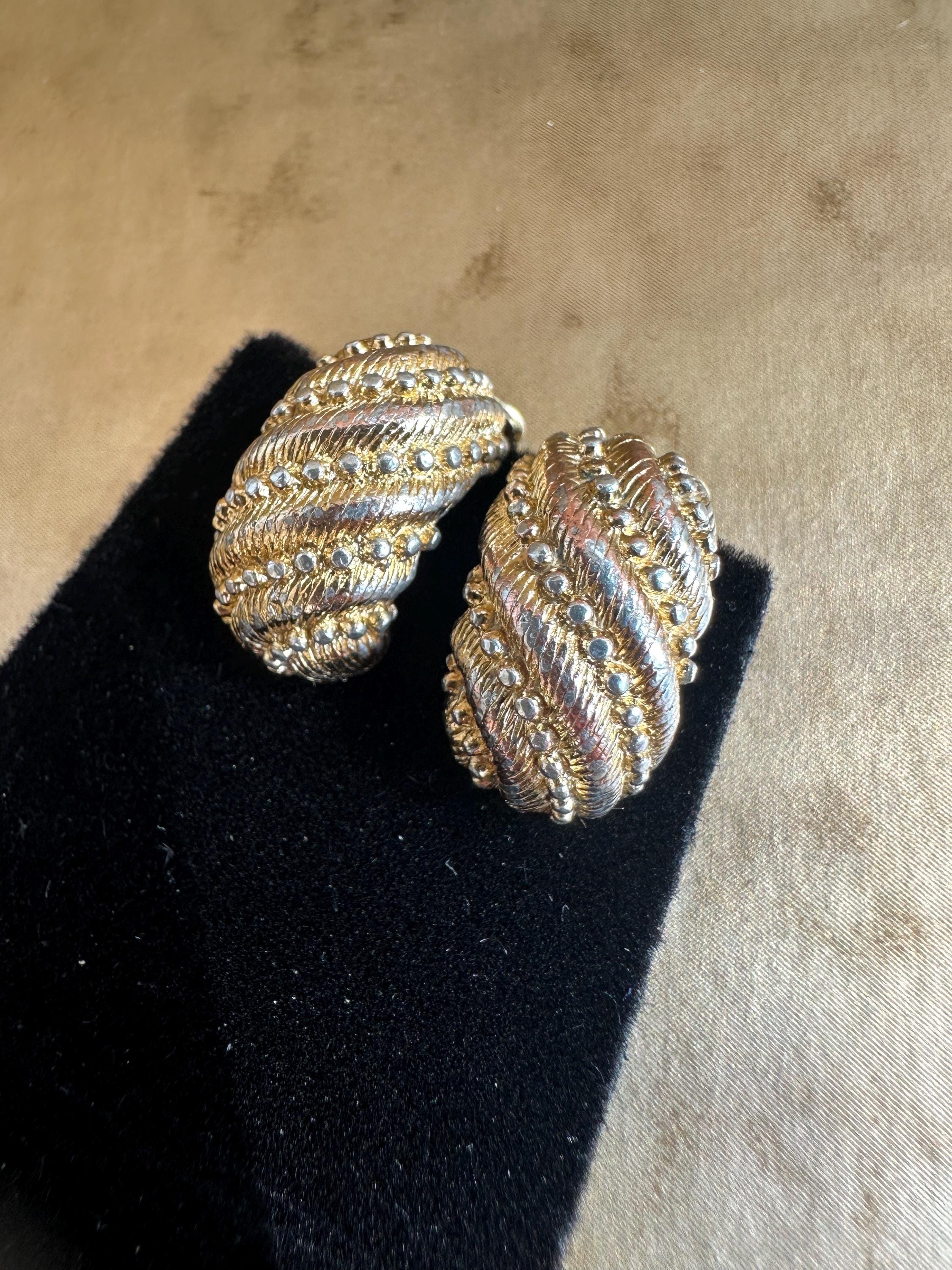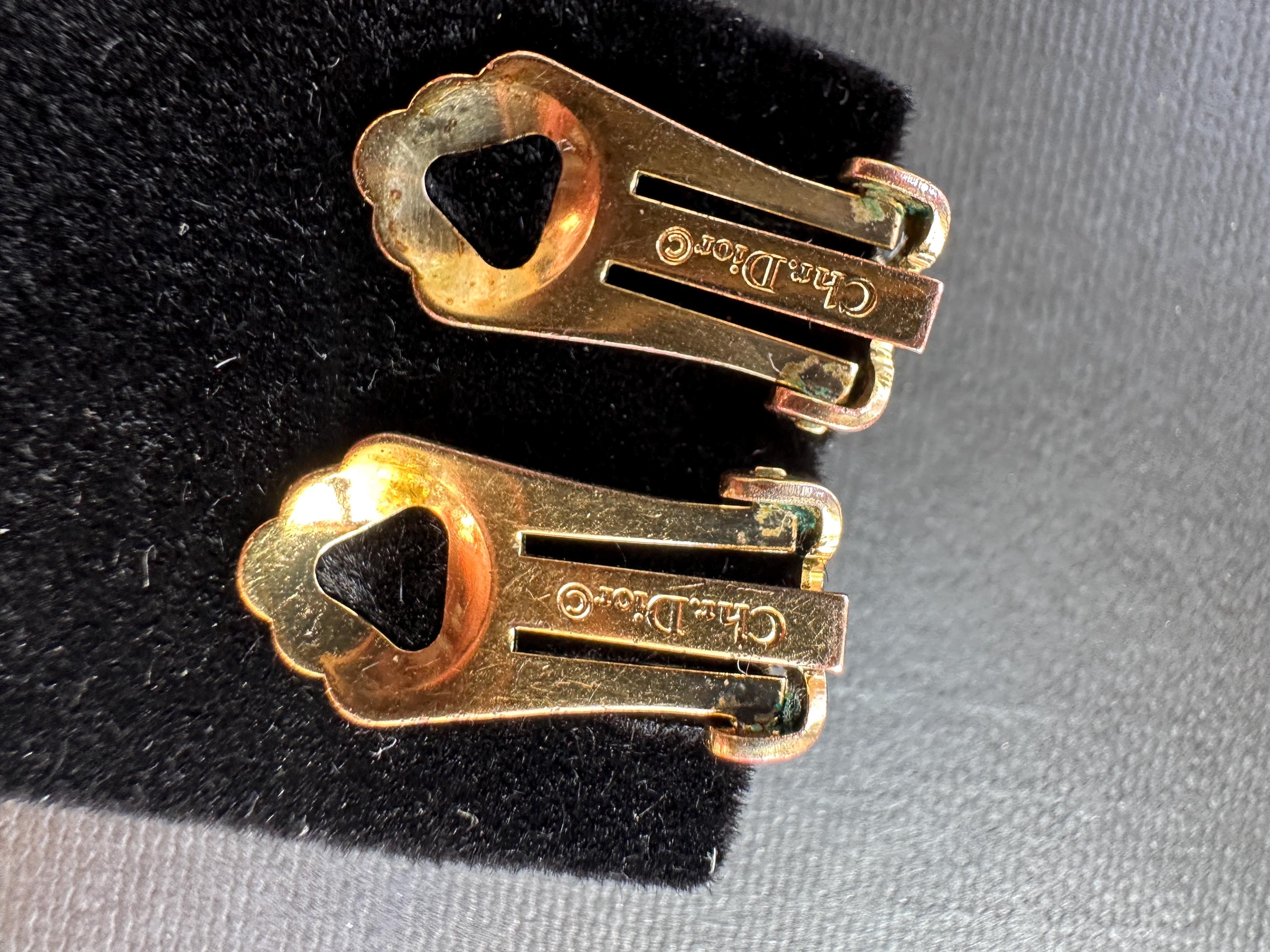 Here is a lovely pair of vintage designer Christian Dior pearl clip on earrings. They measure 1.8cm in height by a width of 1.5cm. They are signed Christian Dior. The gold plating is slightly rubbed only noticeable on close inspection.