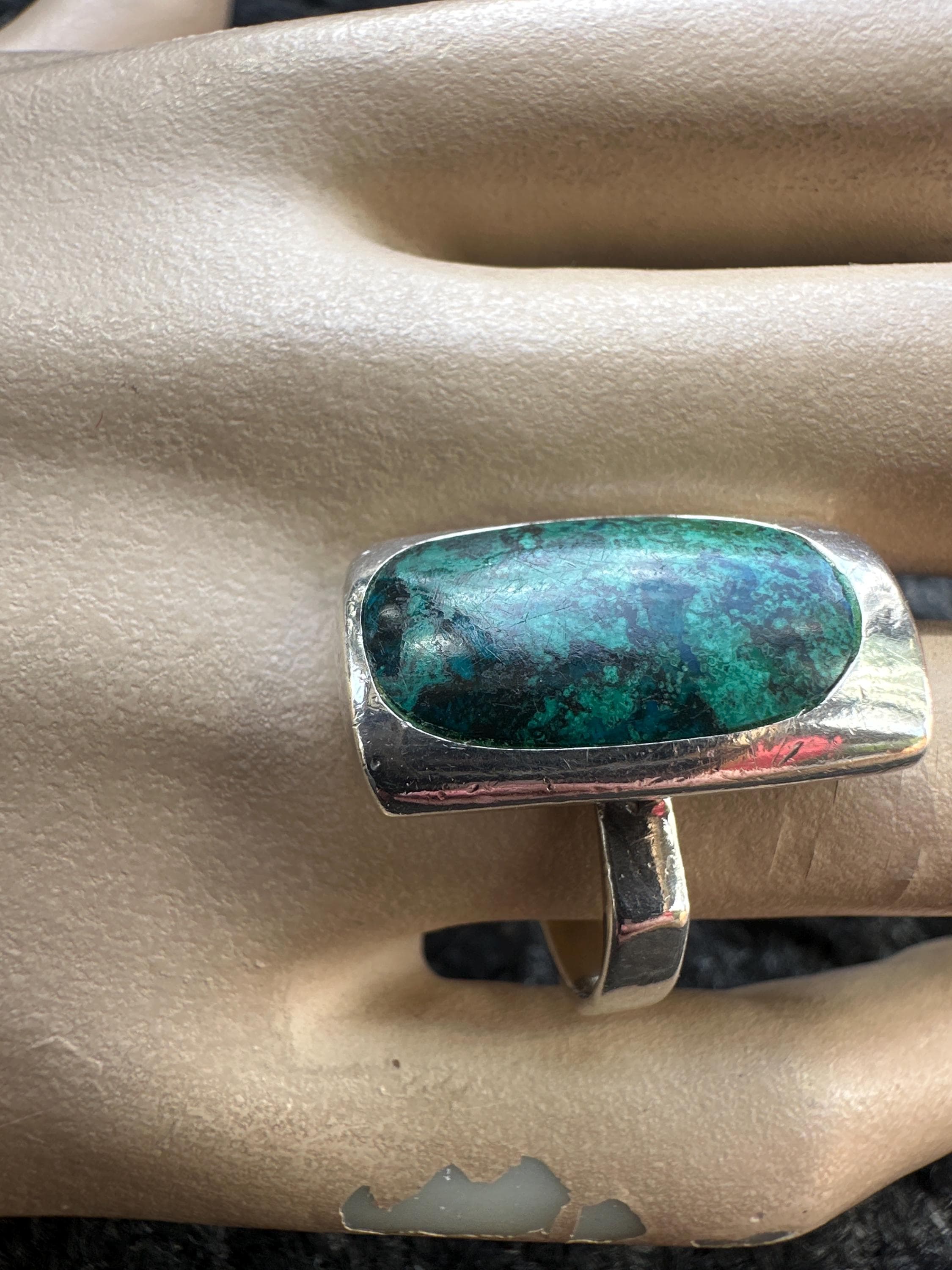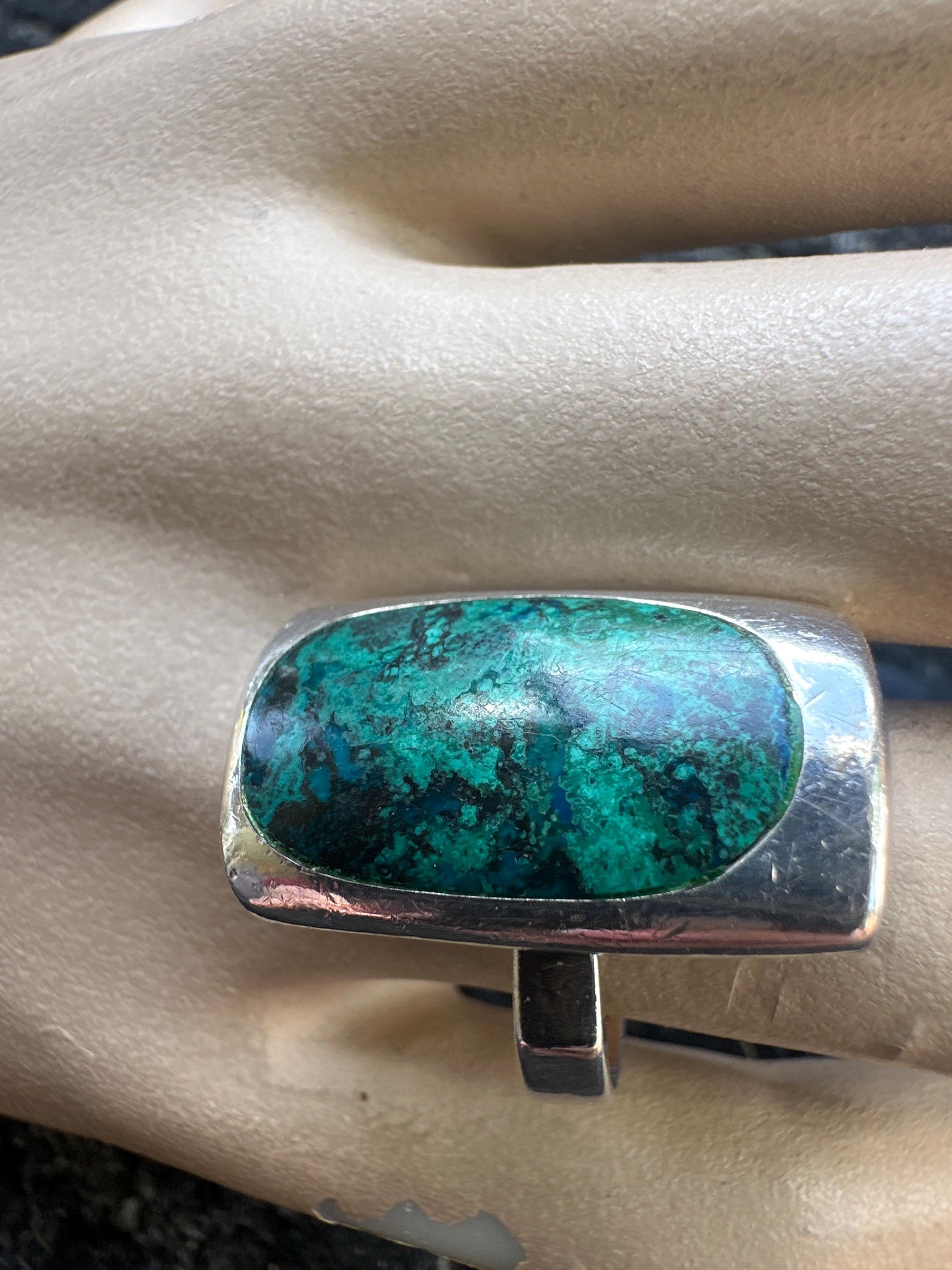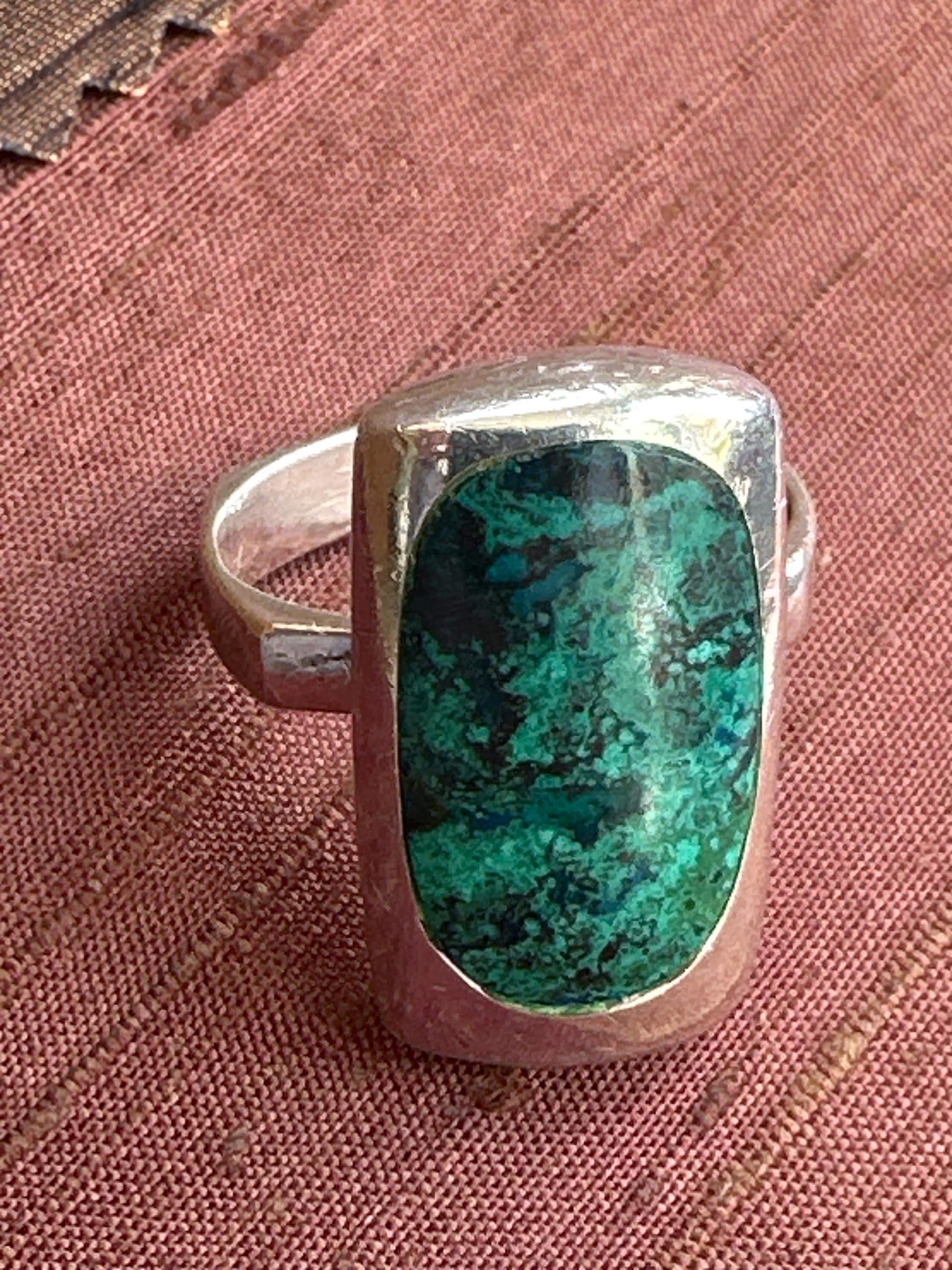 Here is a lovely vintage gold solid silver ring set with an Eilat stone. It is marked made in Israel with the silver hallmark mark. The front of the ring measures 2.5cm in height by 1.5cm in width. it is a ring size O or US 7.