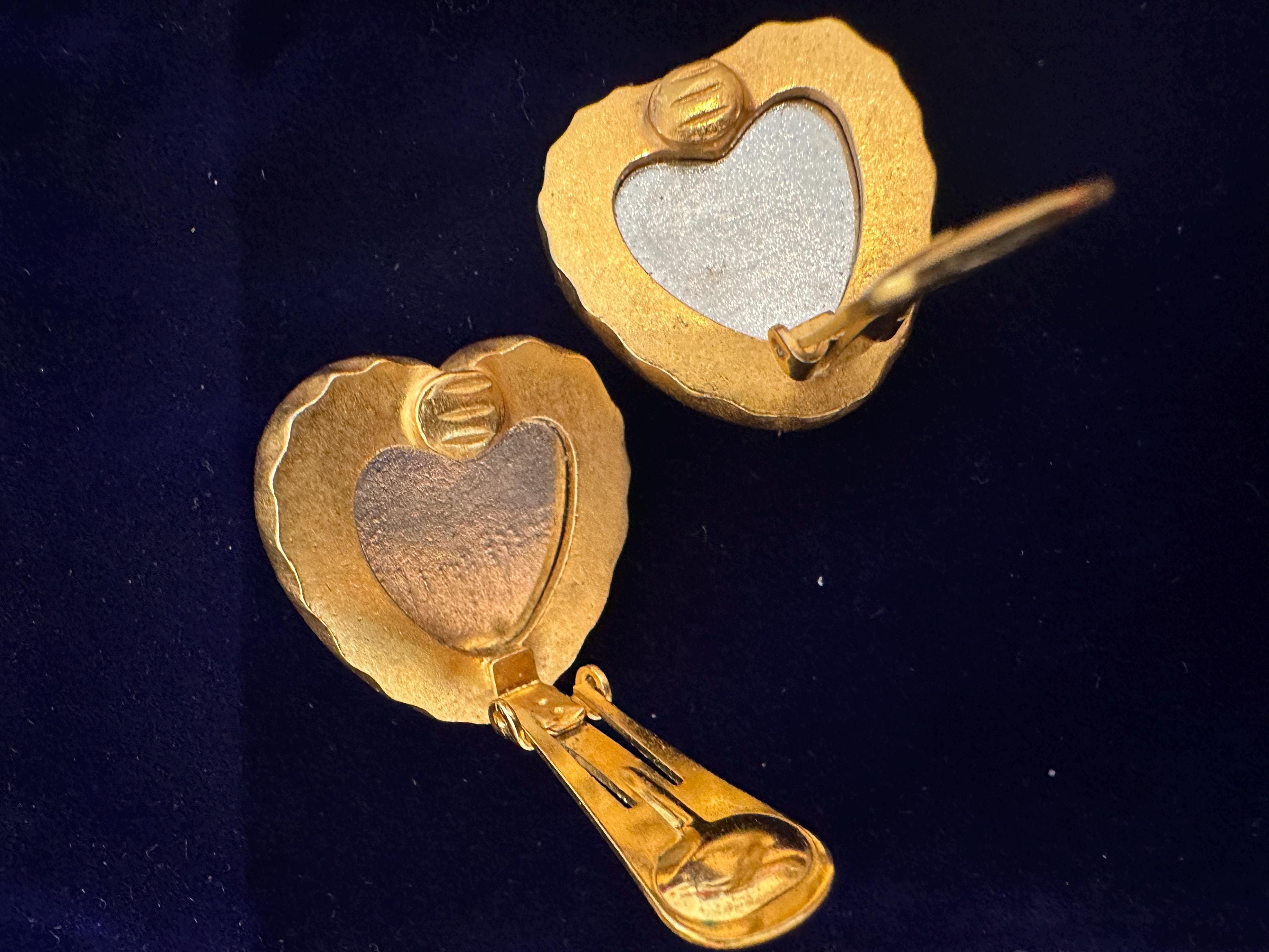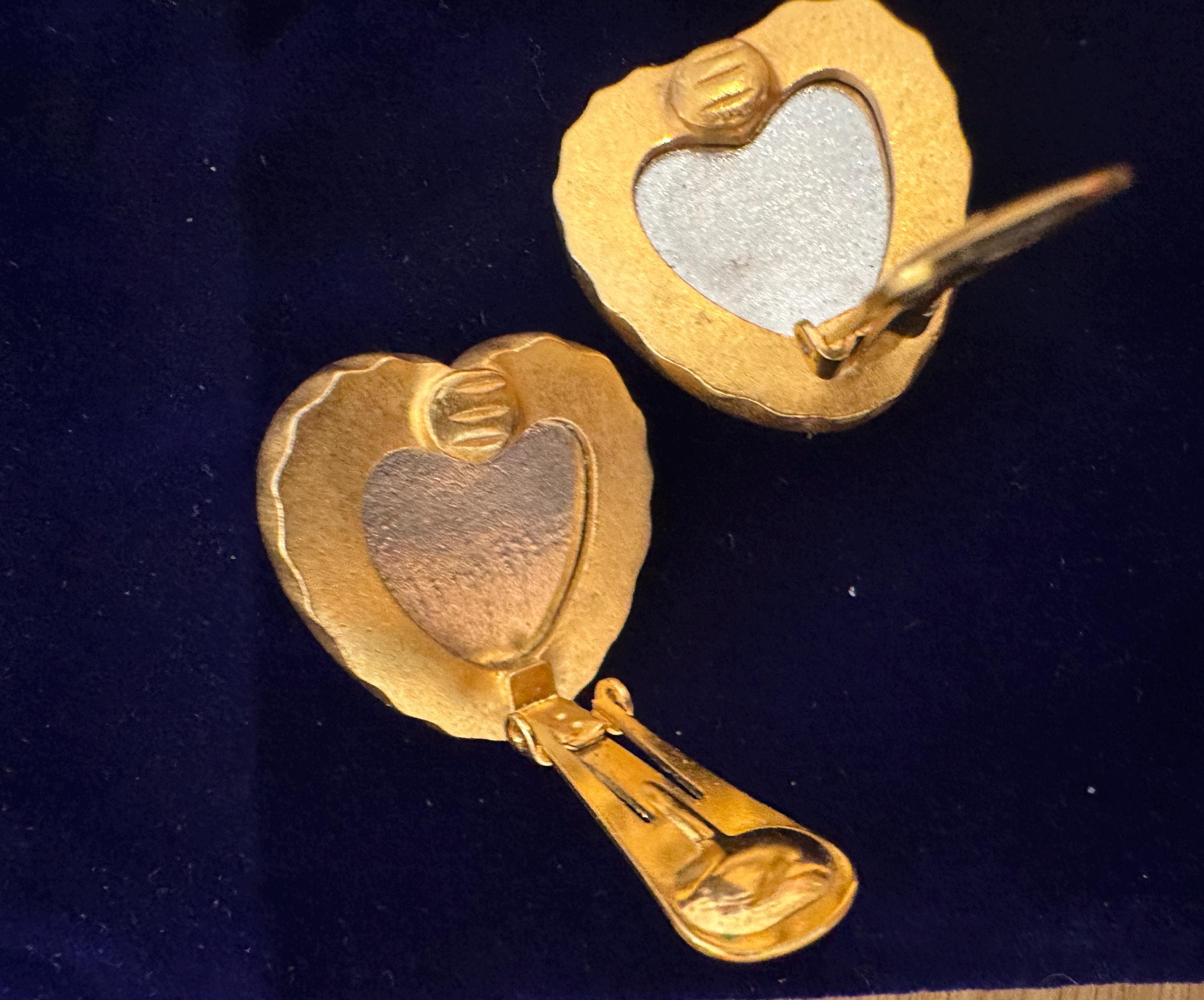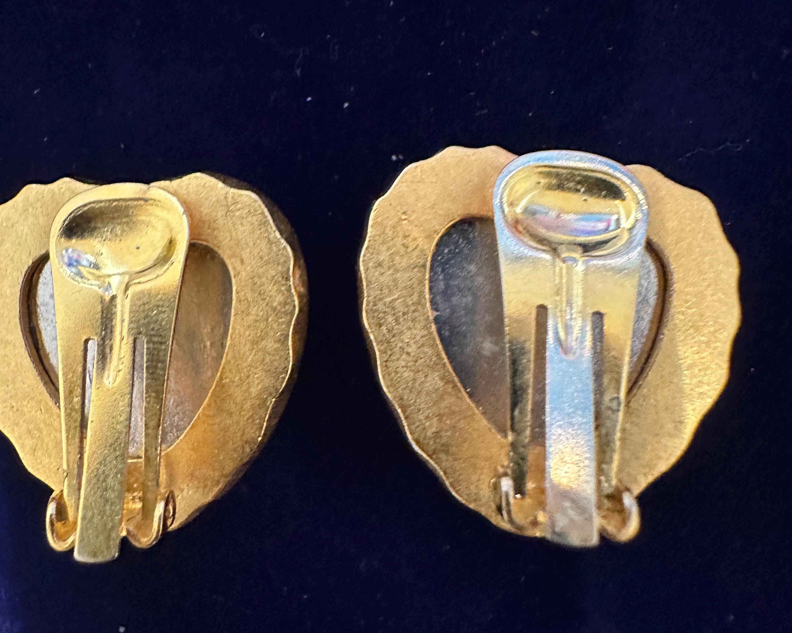 Here are a lovely pair of vintage clip on earrings. The are large in size and measure a approximately 2.8cm in height by 2.8cm in width and weight 12 grams per earring. They remain in great condition with no damage.