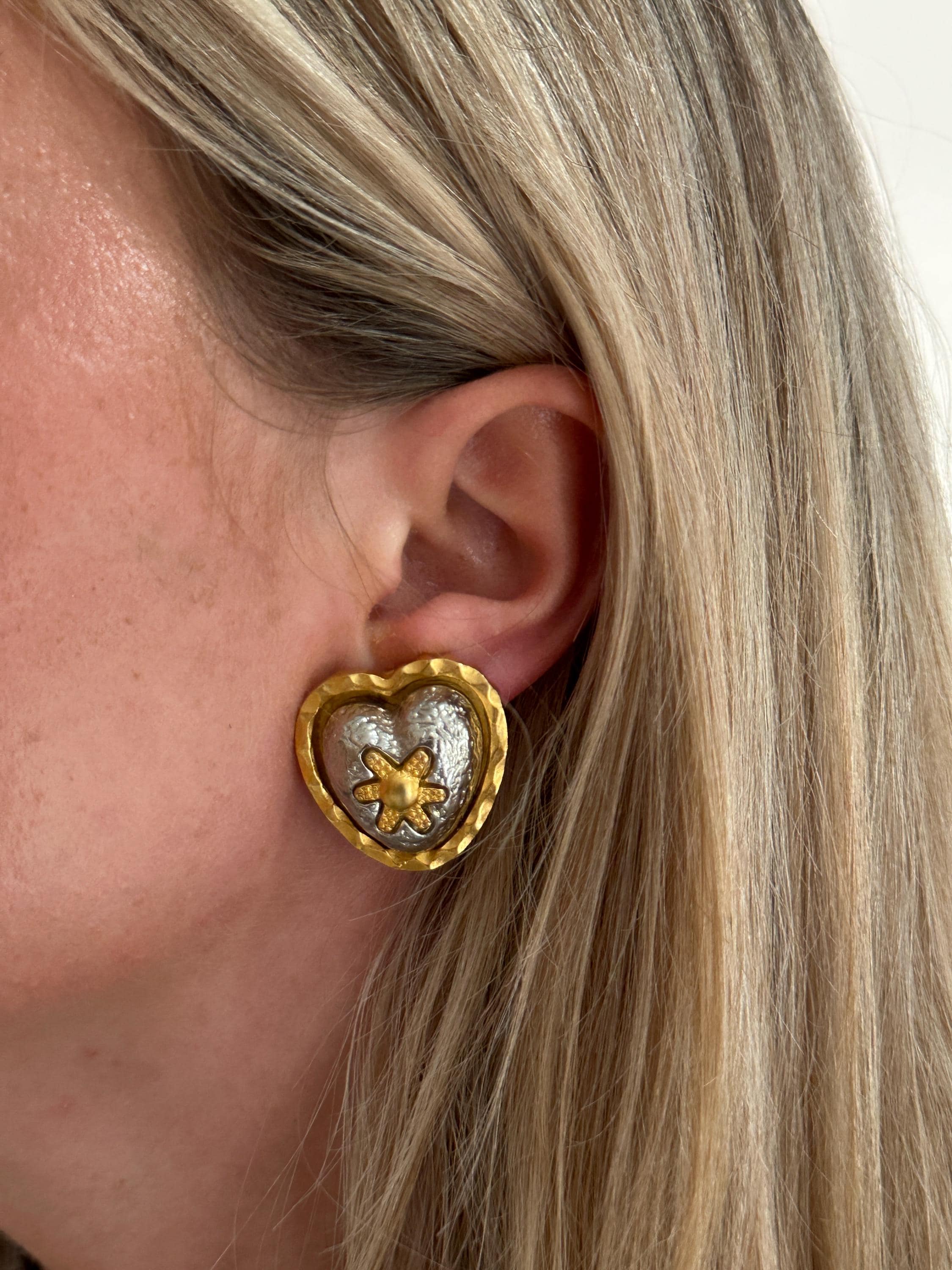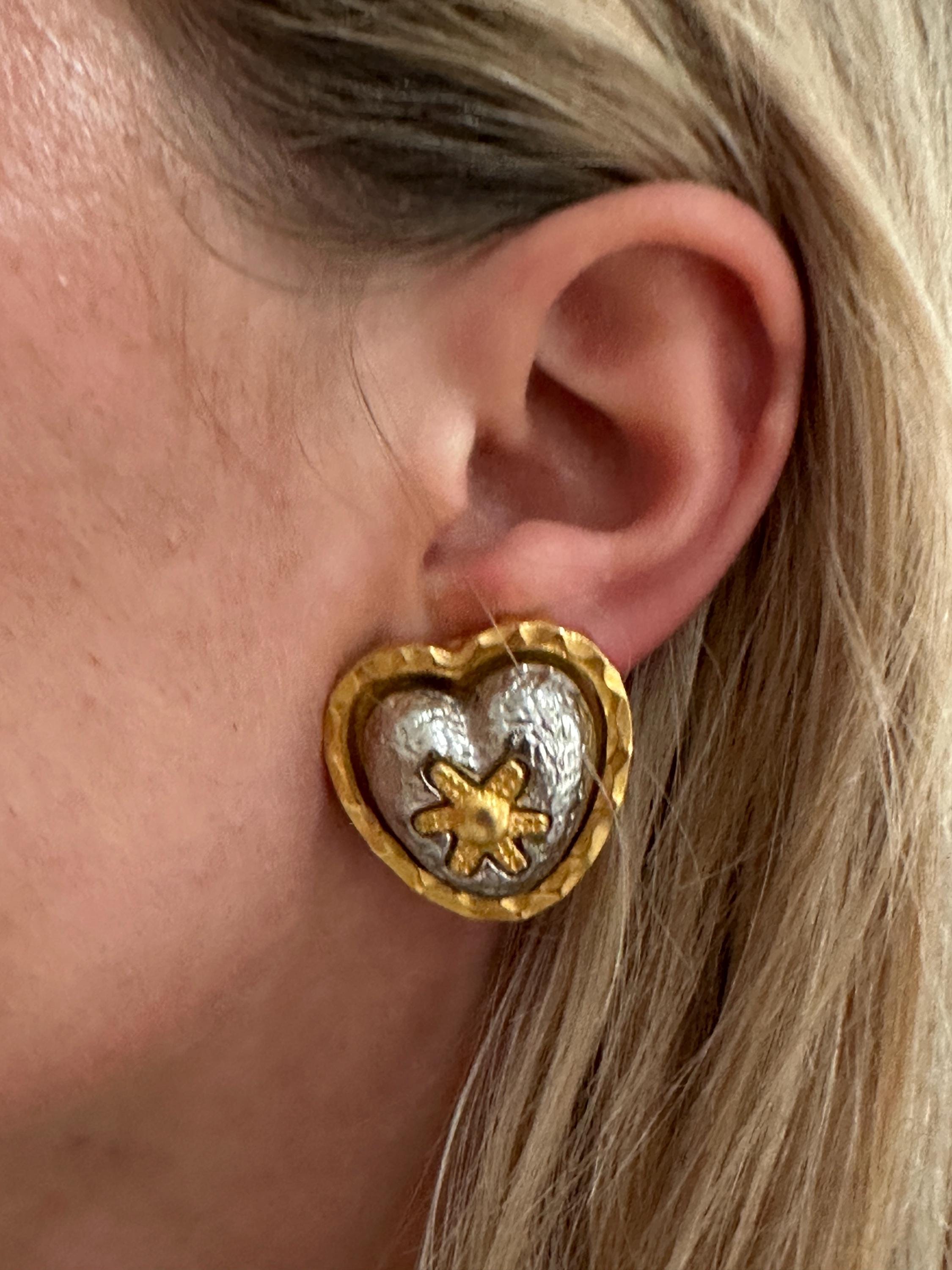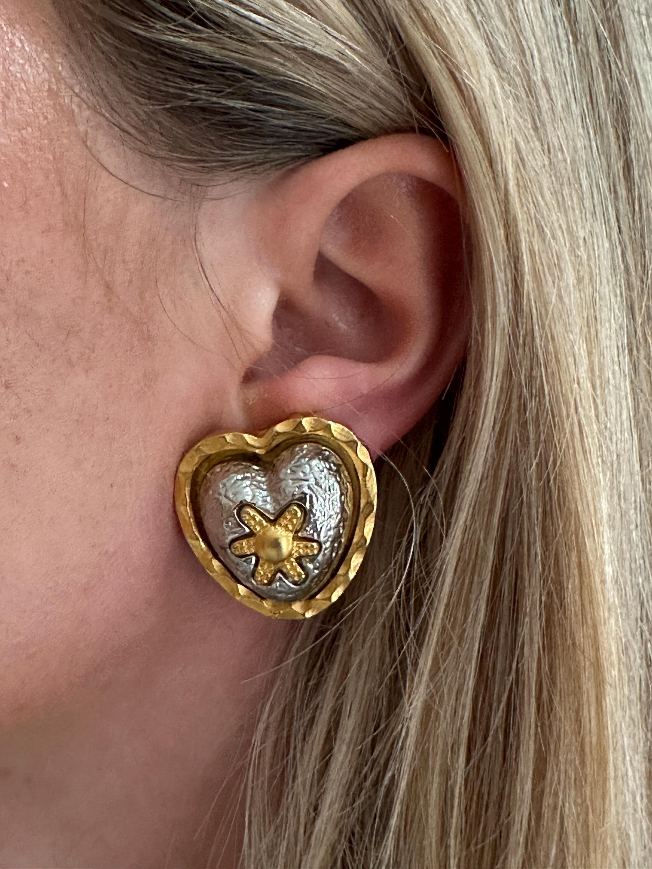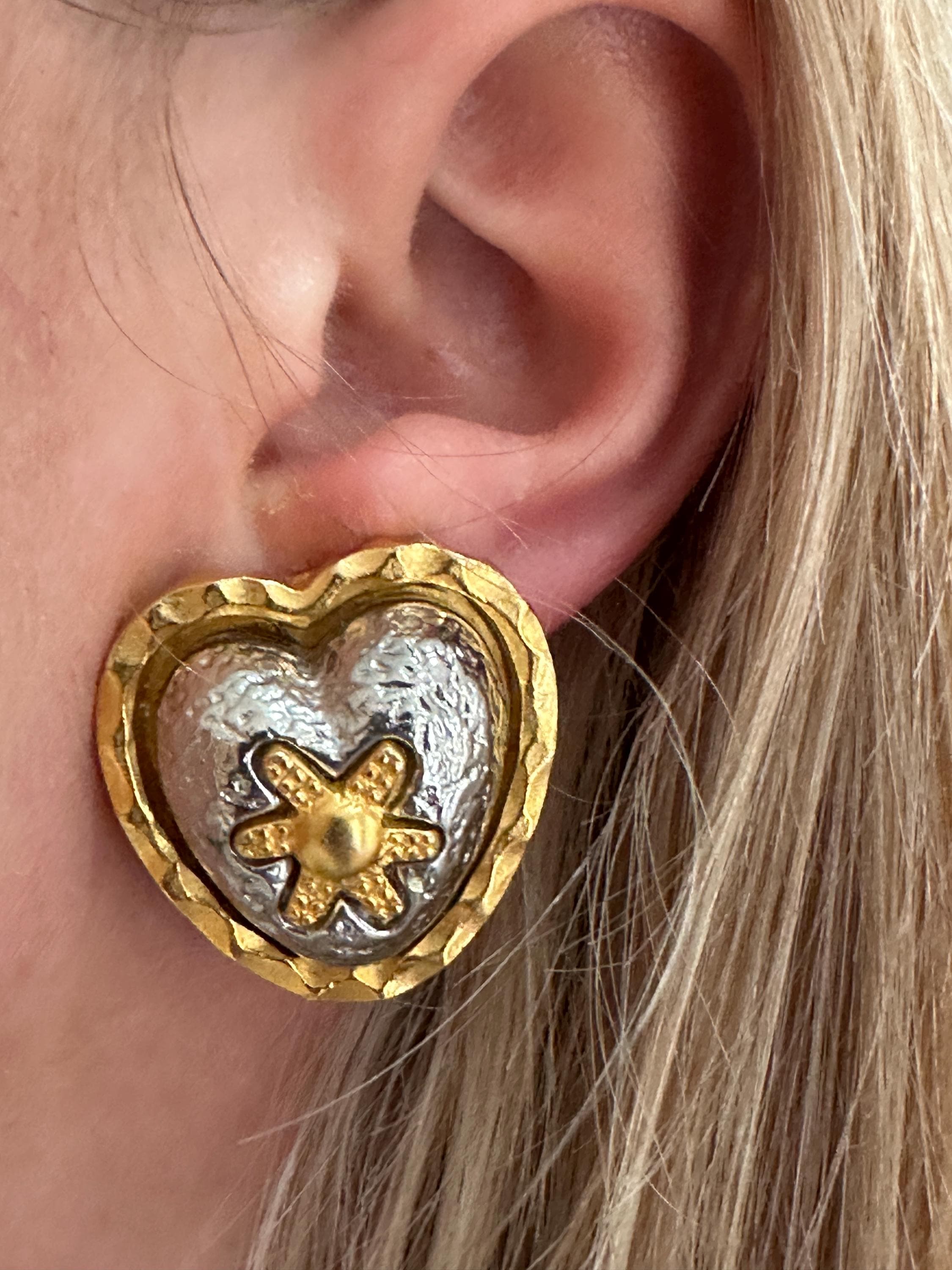 Here are a lovely pair of vintage clip on earrings. The are large in size and measure a approximately 2.8cm in height by 2.8cm in width and weight 12 grams per earring. They remain in great condition with no damage.
