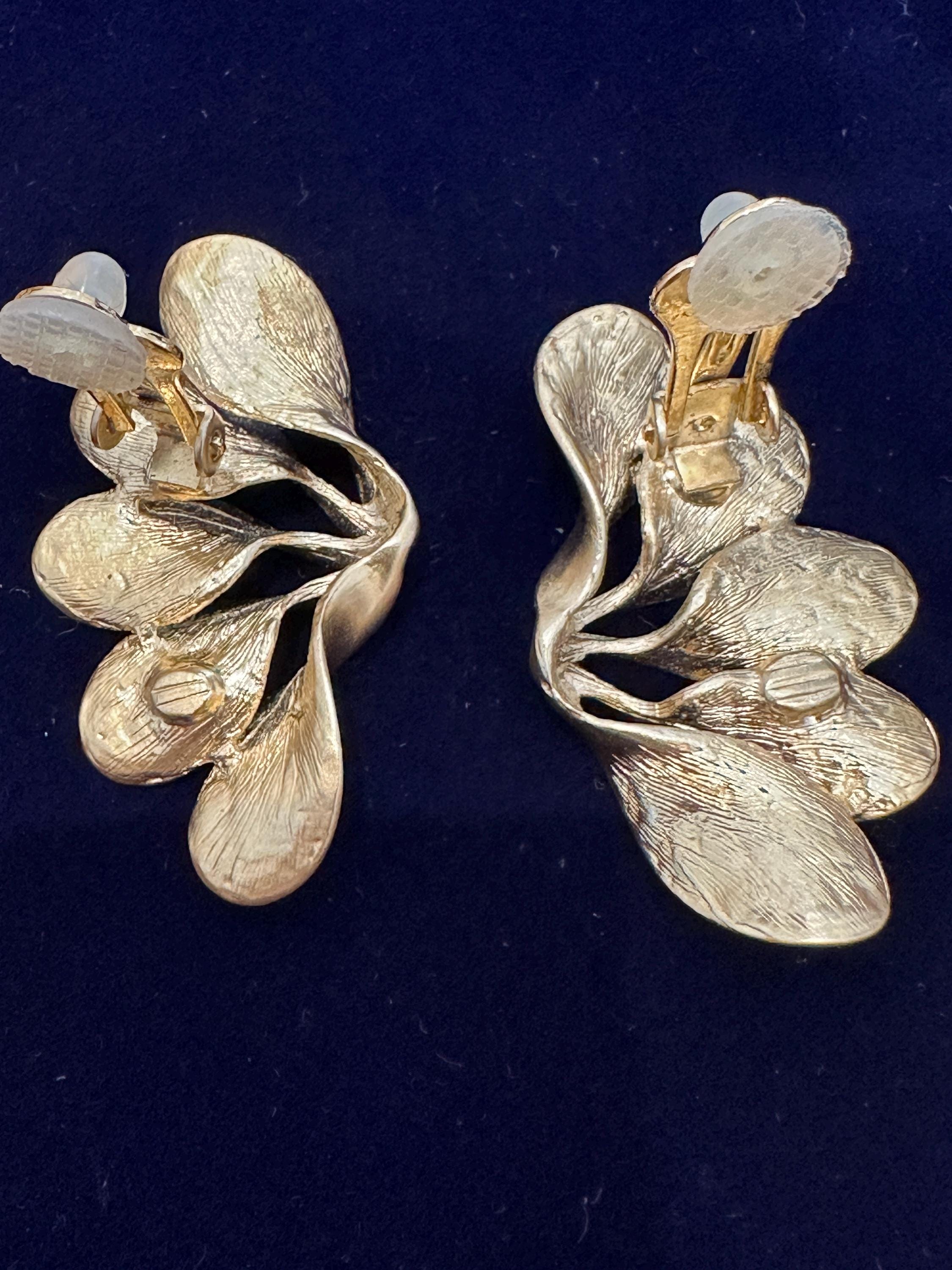 Here are a fantastic pair of vintage clip on earrings. These measure 4cm in height . They make a great stand out pair of earrings and are lightweight on the ears. They remain in great condition.