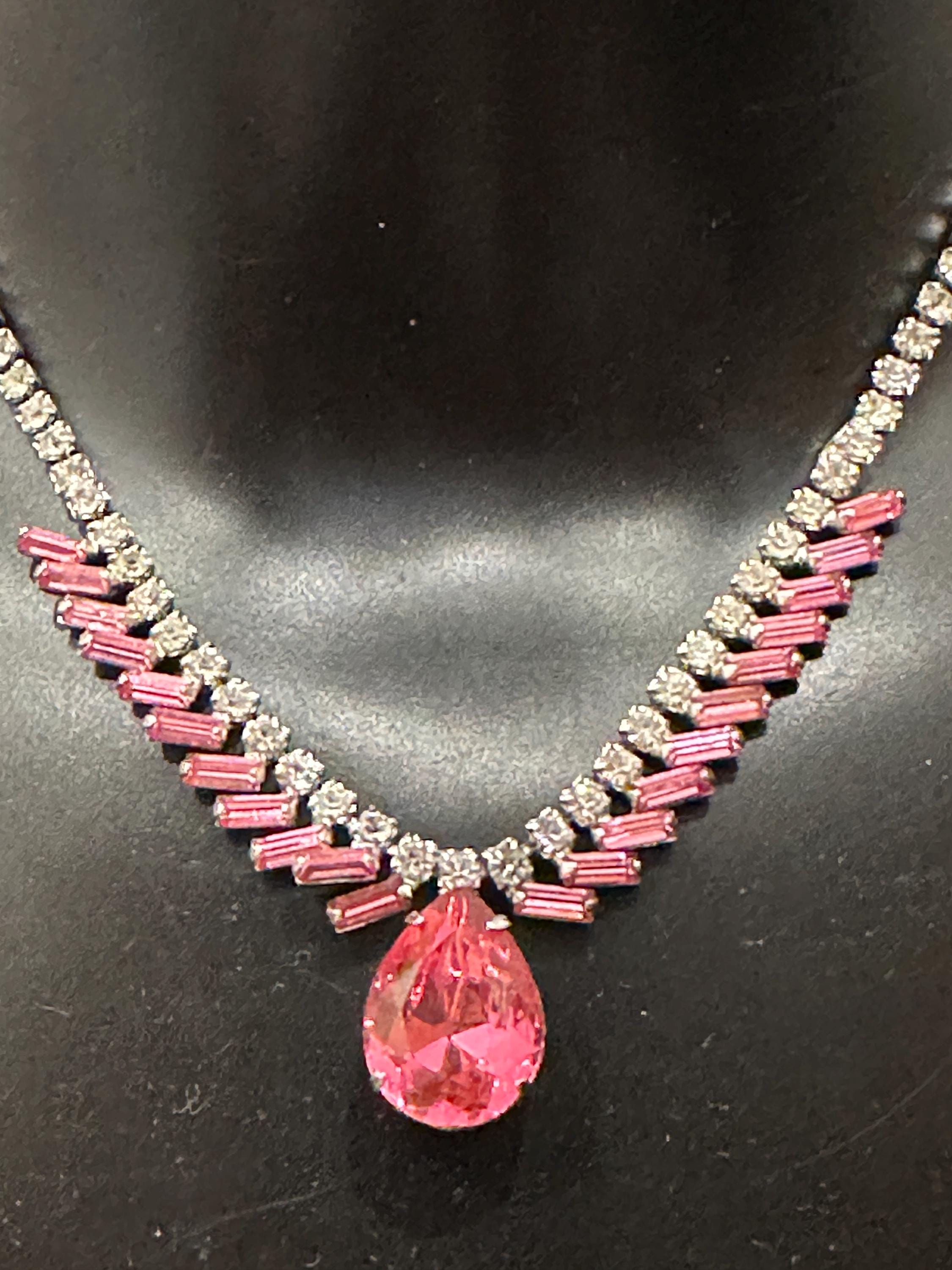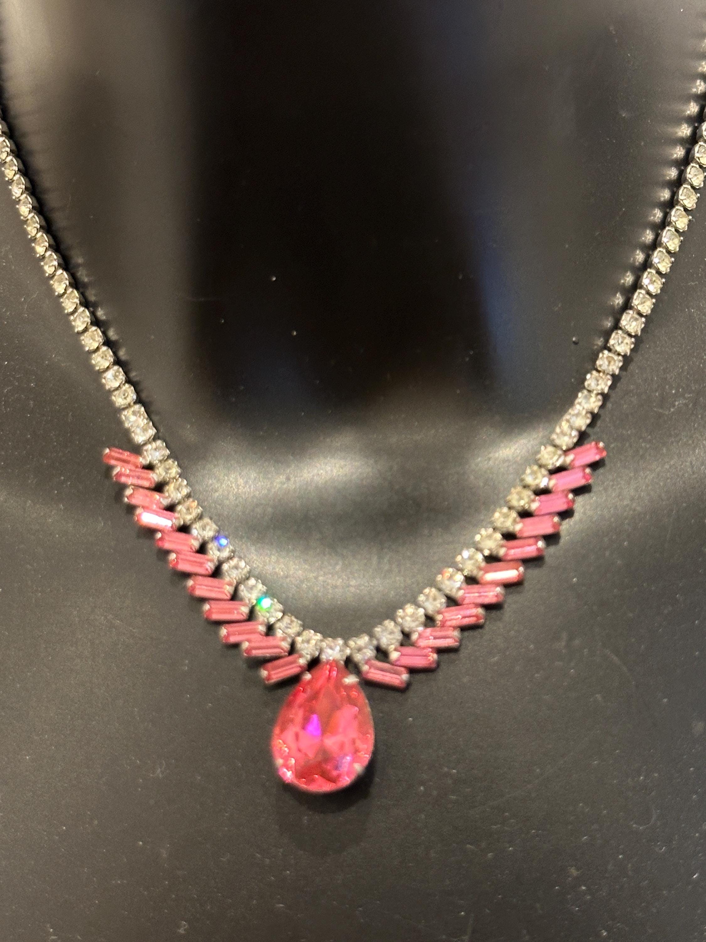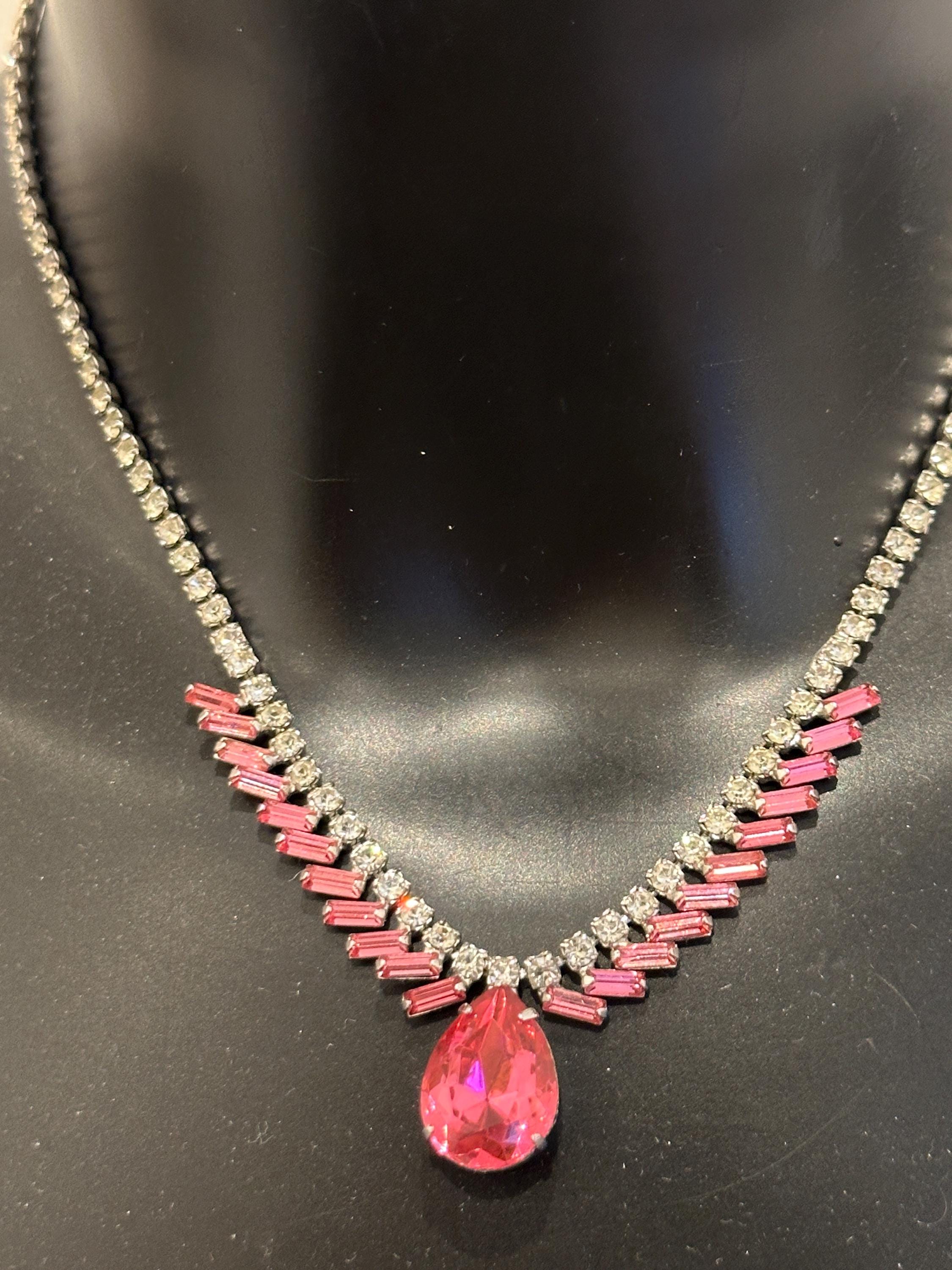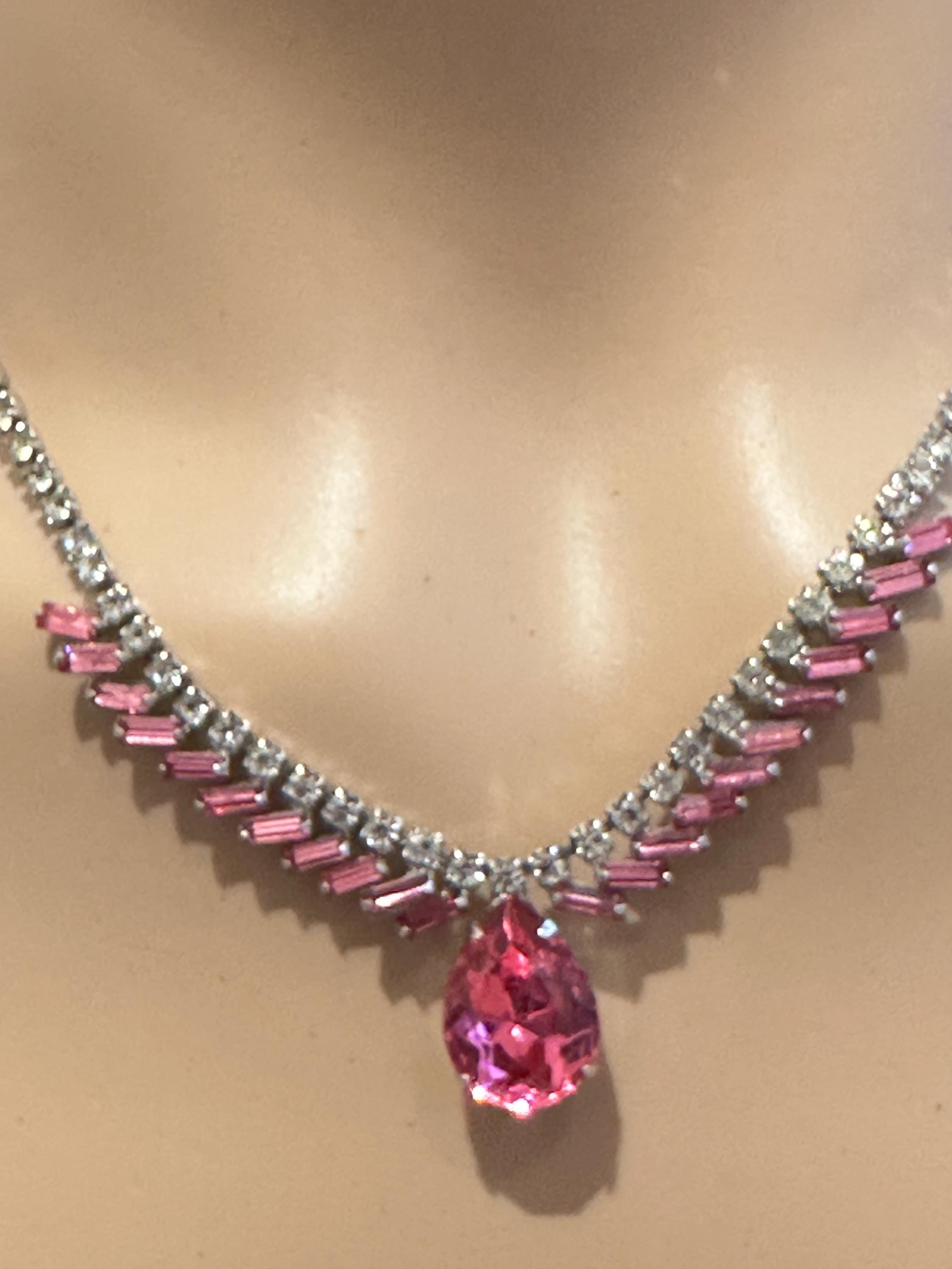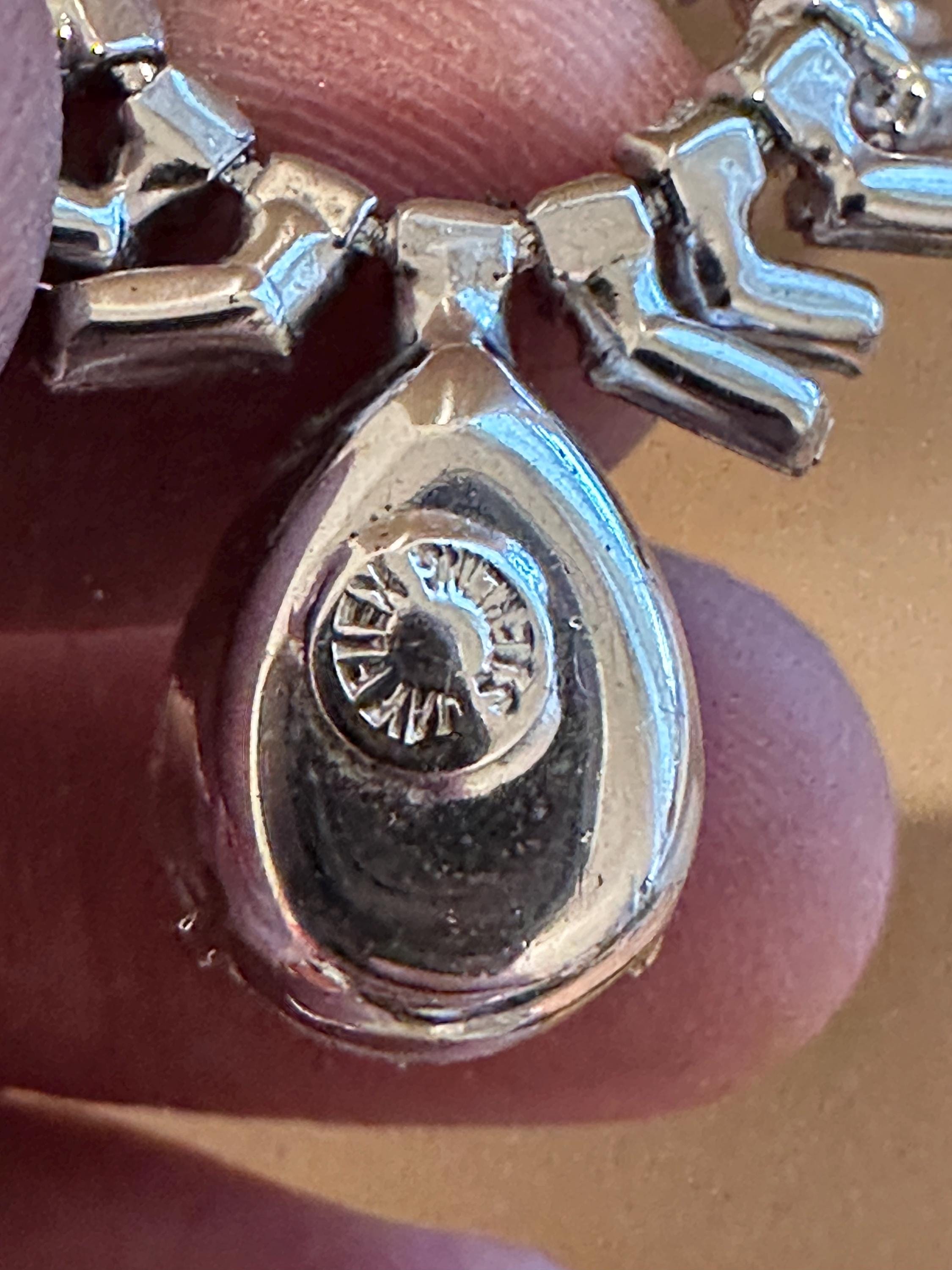 Here is a beautiful vintage necklace from the 1950s/60s. It is made from sterling silver and set with beautiful sparkling crystals. It mesures 15.5 inches in length and remains in excellent condition. It is signed on the reverse Jay flex sterling. They were a high-quality costume jewellery maker from Montreal Canada from early 1930-60s.