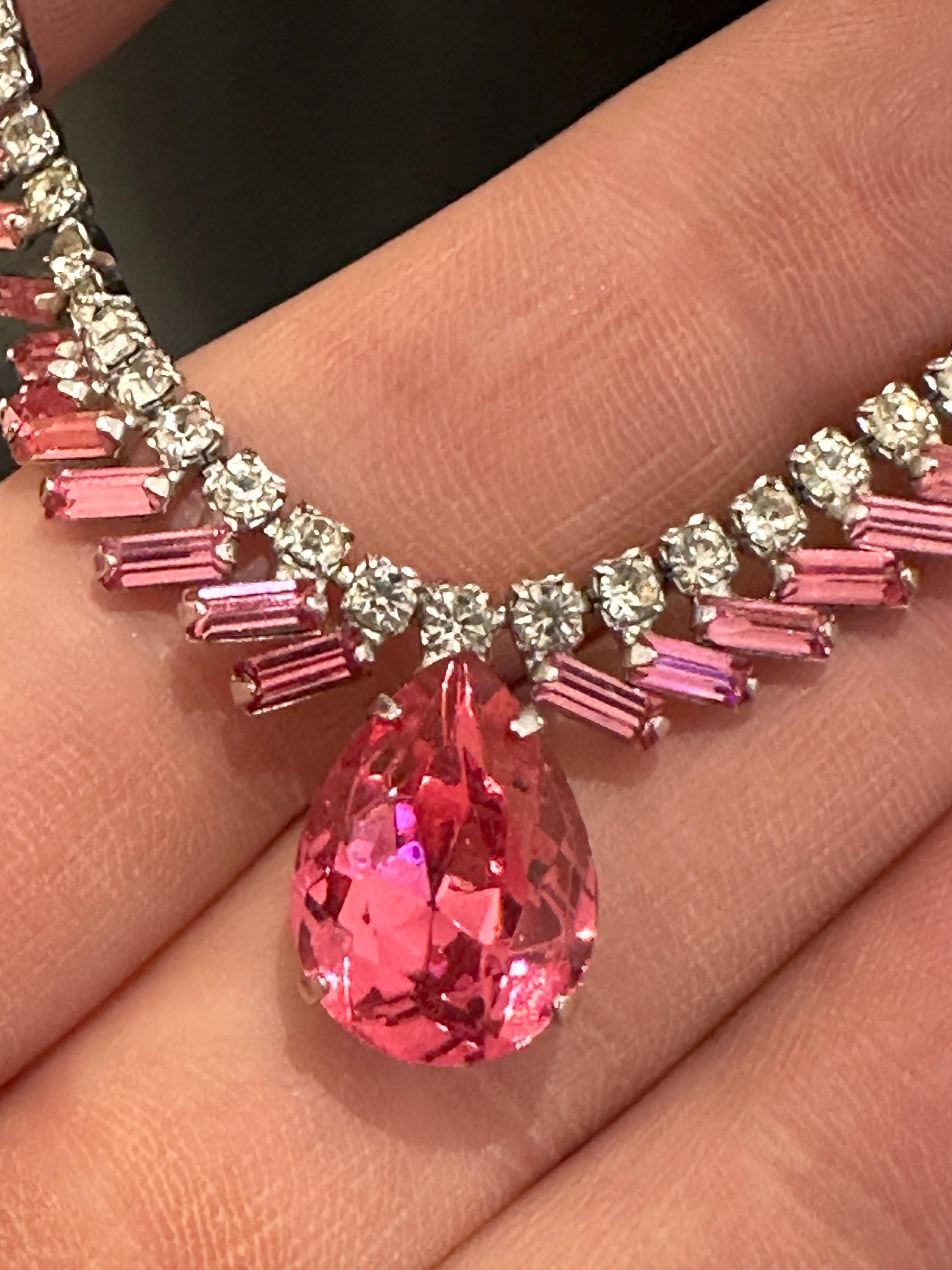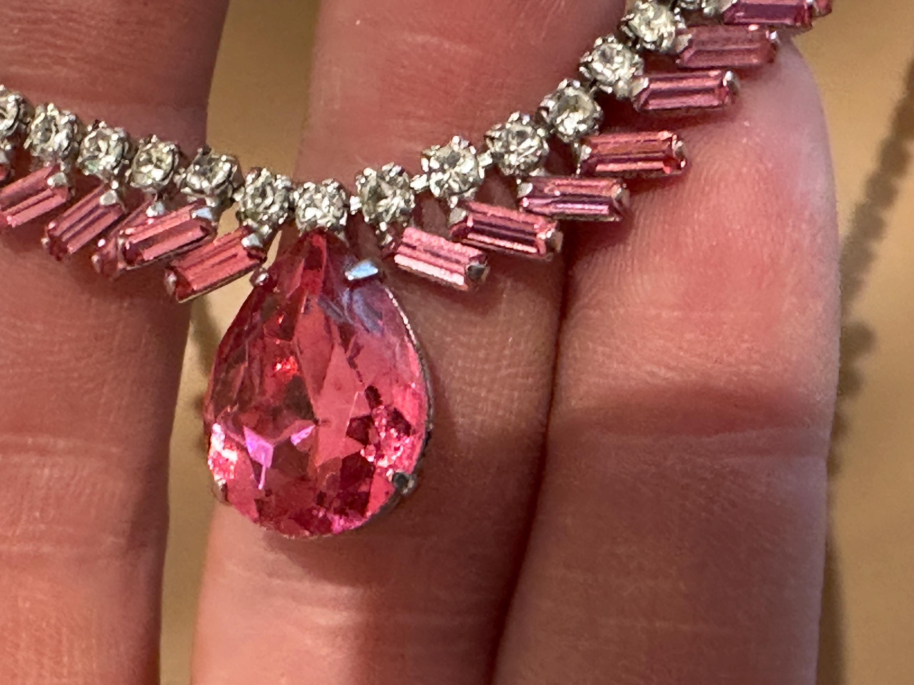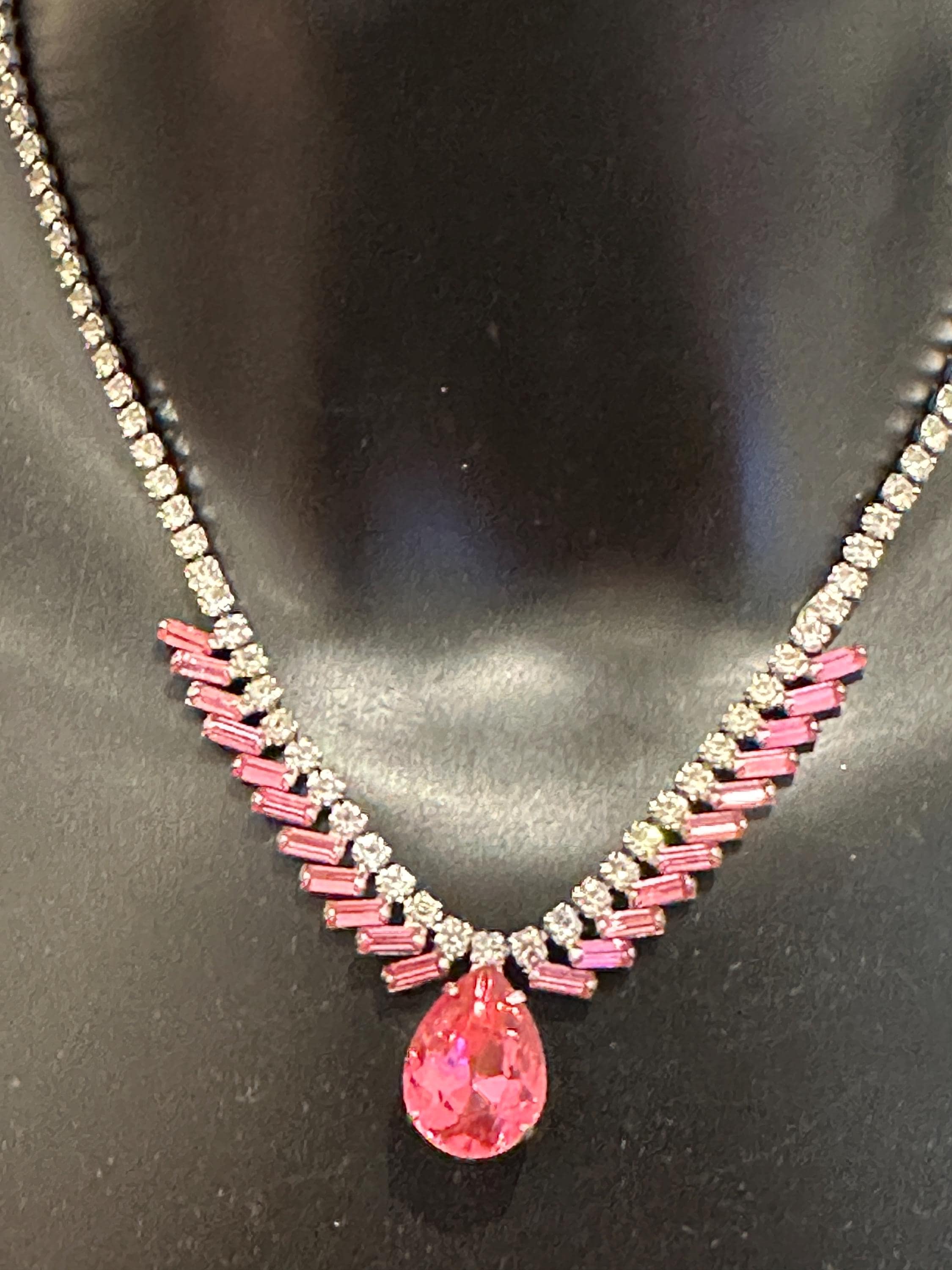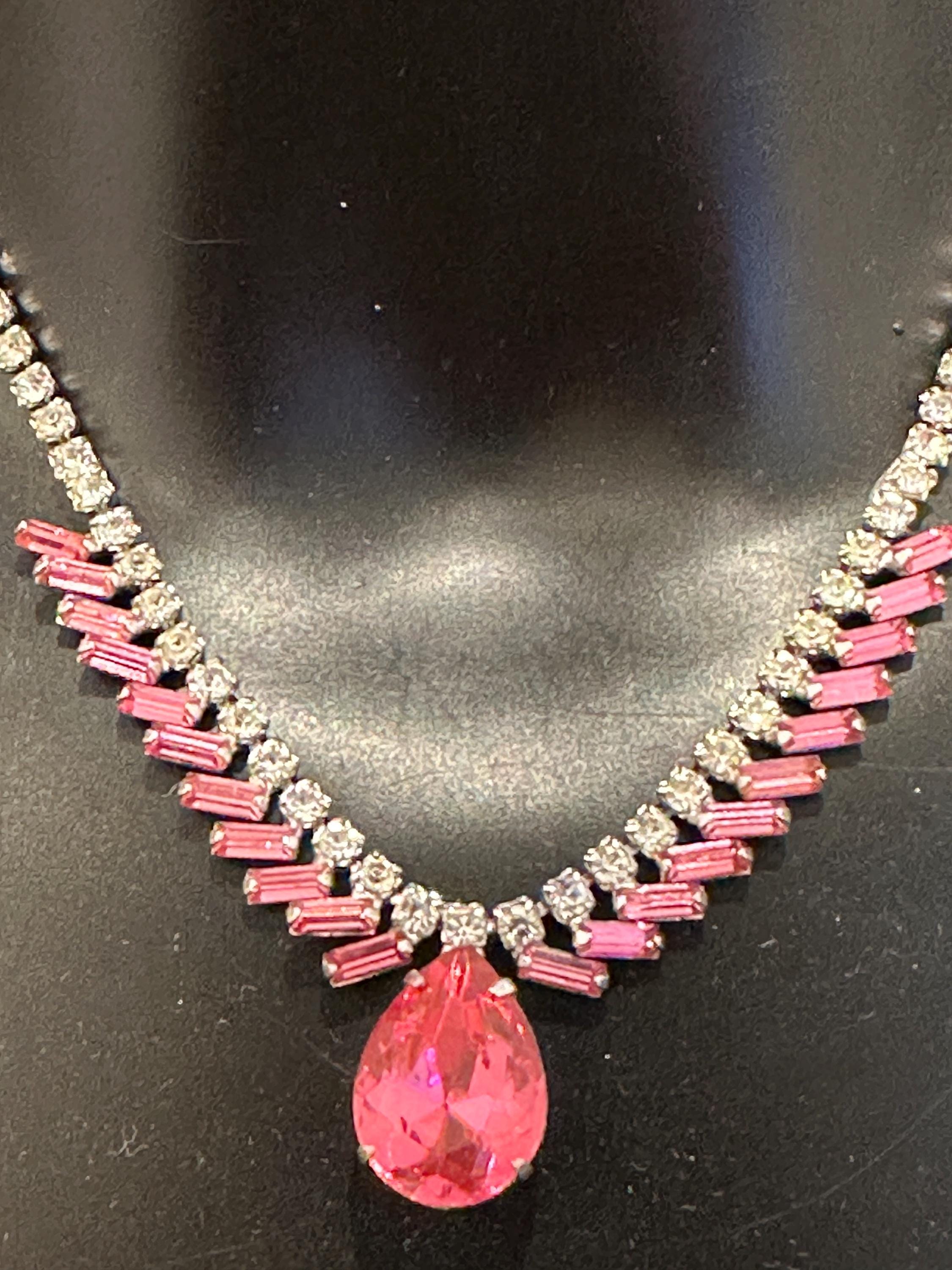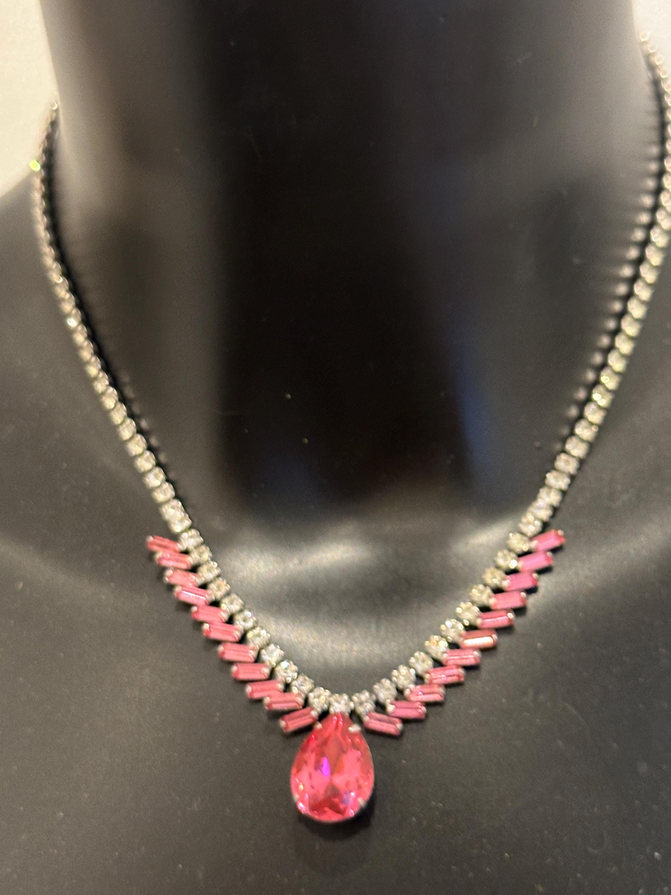 Here is a beautiful vintage necklace from the 1950s/60s. It is made from sterling silver and set with beautiful sparkling crystals. It mesures 15.5 inches in length and remains in excellent condition. It is signed on the reverse Jay flex sterling. They were a high-quality costume jewellery maker from Montreal Canada from early 1930-60s.